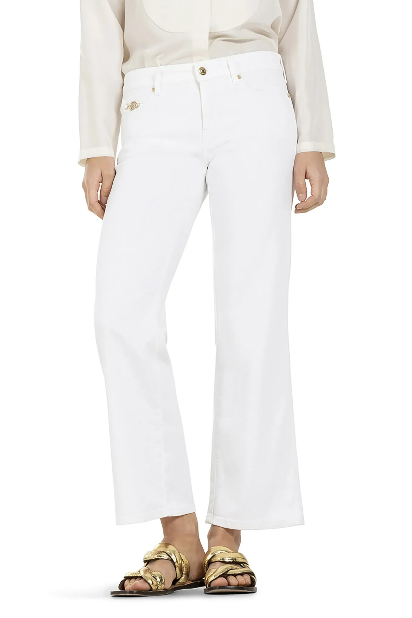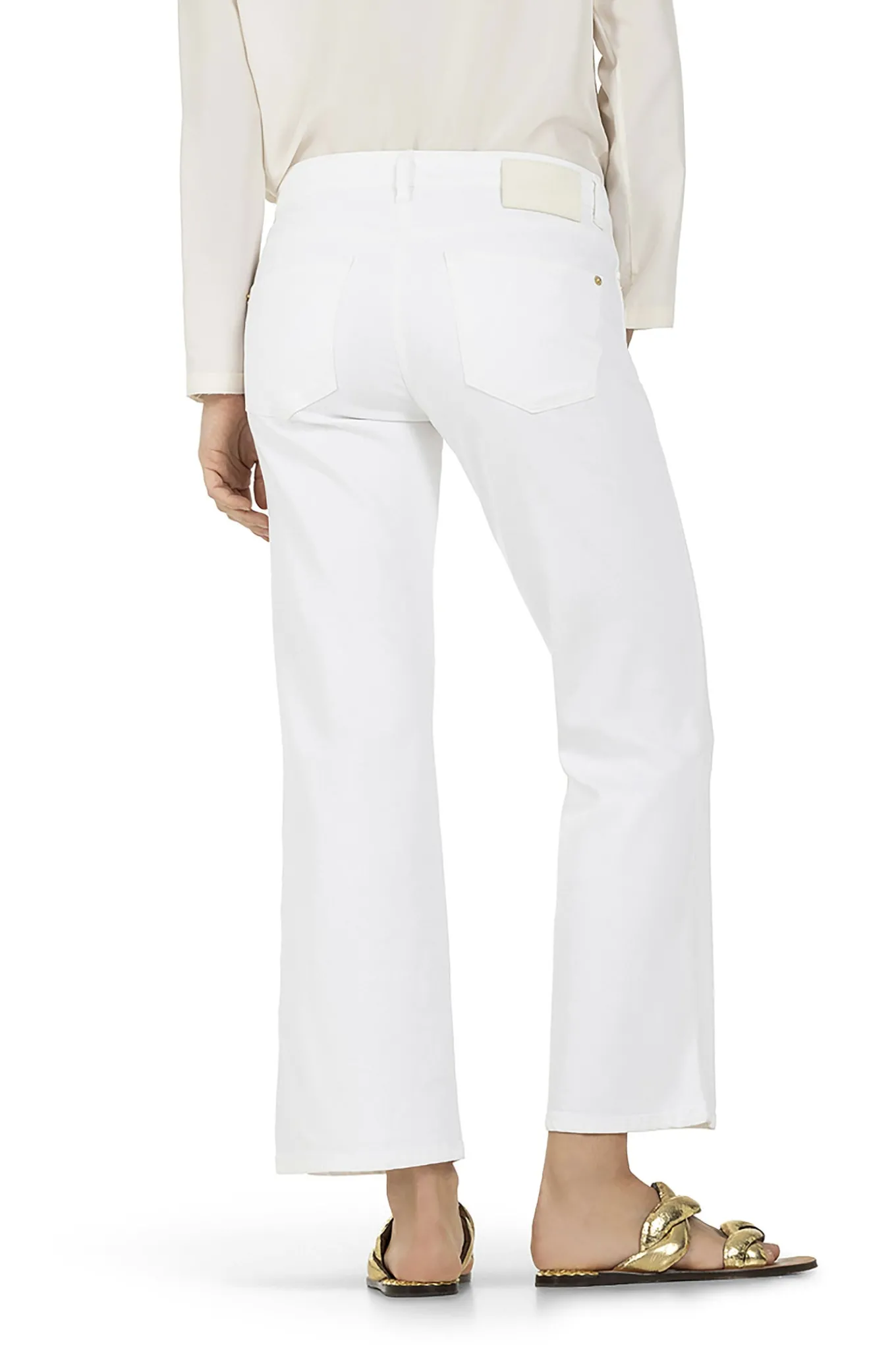 OBS! Fjernlager. Levering kan blive forlænget med 2-3 dage, hvis varen ikke findes i vores butik lige nu.Flotte og enkle bukser fra Cambio der er helt perfekte til sommeren. Bukserne har også en cropped længde, vidde i benene og en fin guld detalje ved den ene forlomme.