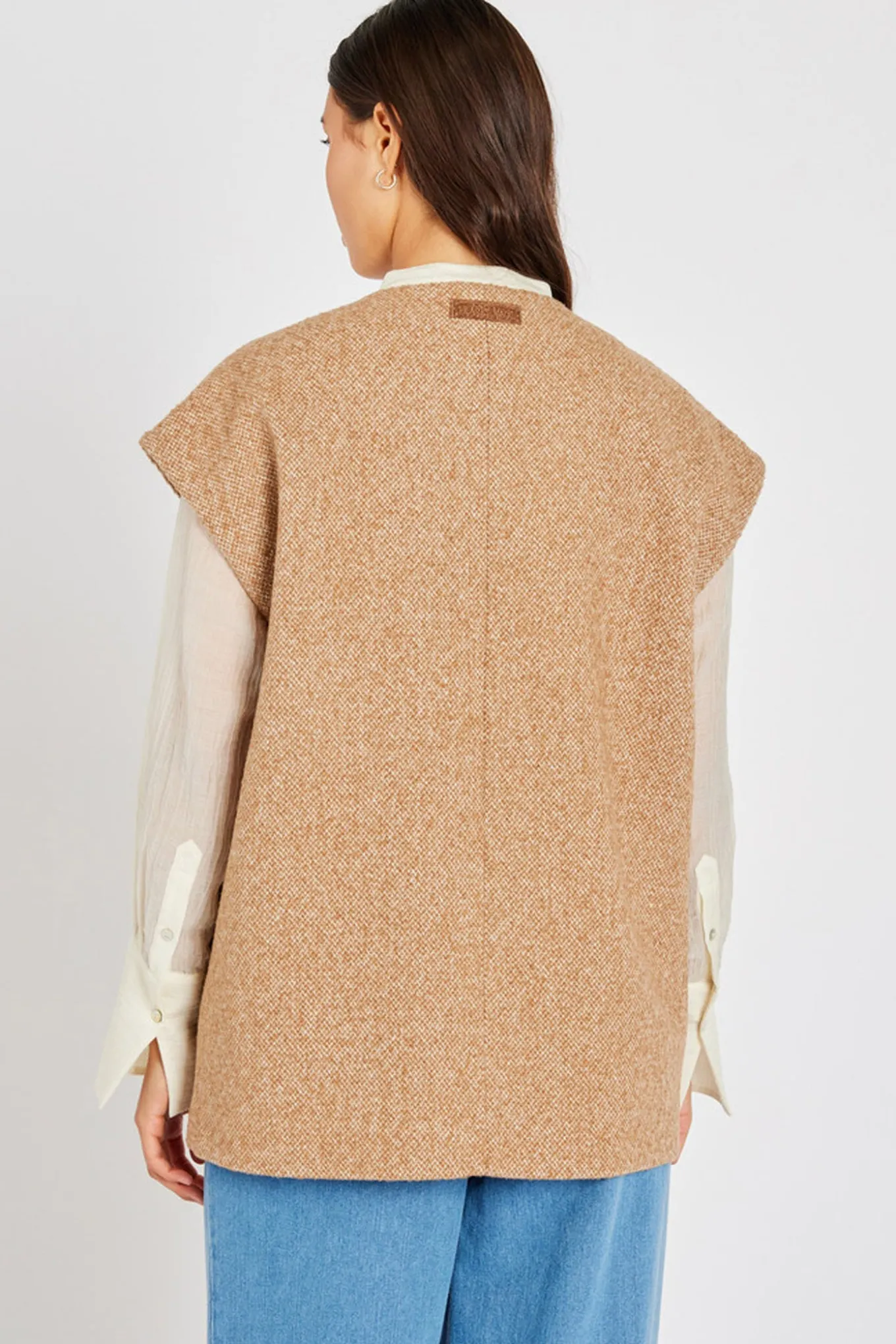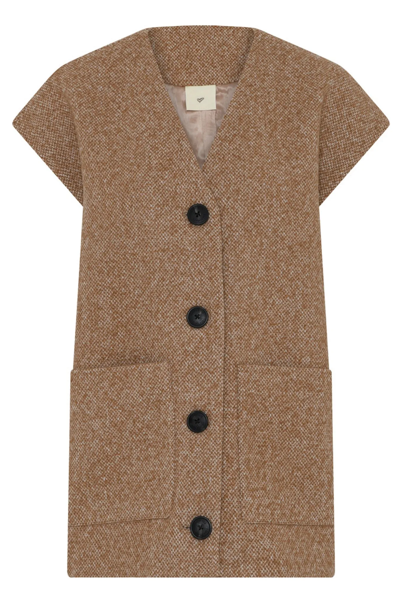 Opgrader din garderobe med denne lækre veste fra Heartmade. Den har en varm og behagelig blanding af uld, polyester og akryl i en smuk kanel farve.