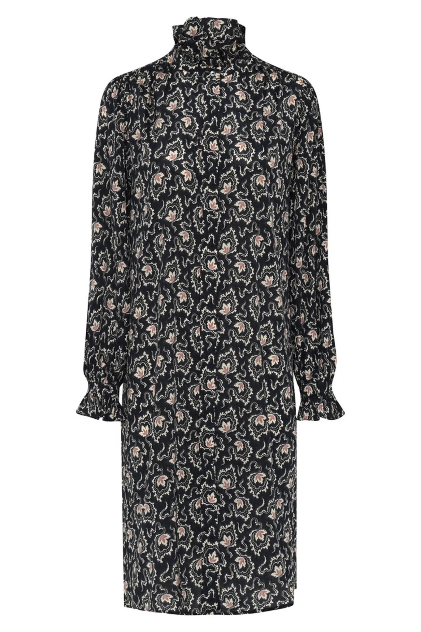 Elegant Heartmade kjole i 202 Navy Dekor. Lavet af 93% silke og 7% elastan, hvilket sikrer en behagelig pasform. Perfekt til enhver lejlighed.