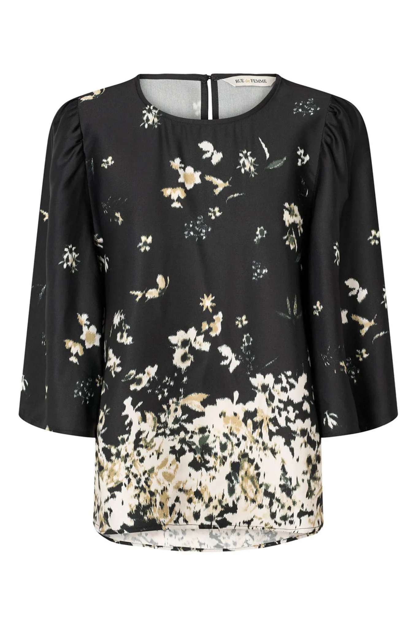 Skab et sofistikeret og tidløst look med denne sorte bluse fra Rue de Femme. Lavet af 100% viskose, er den perfekt til enhver lejlighed.