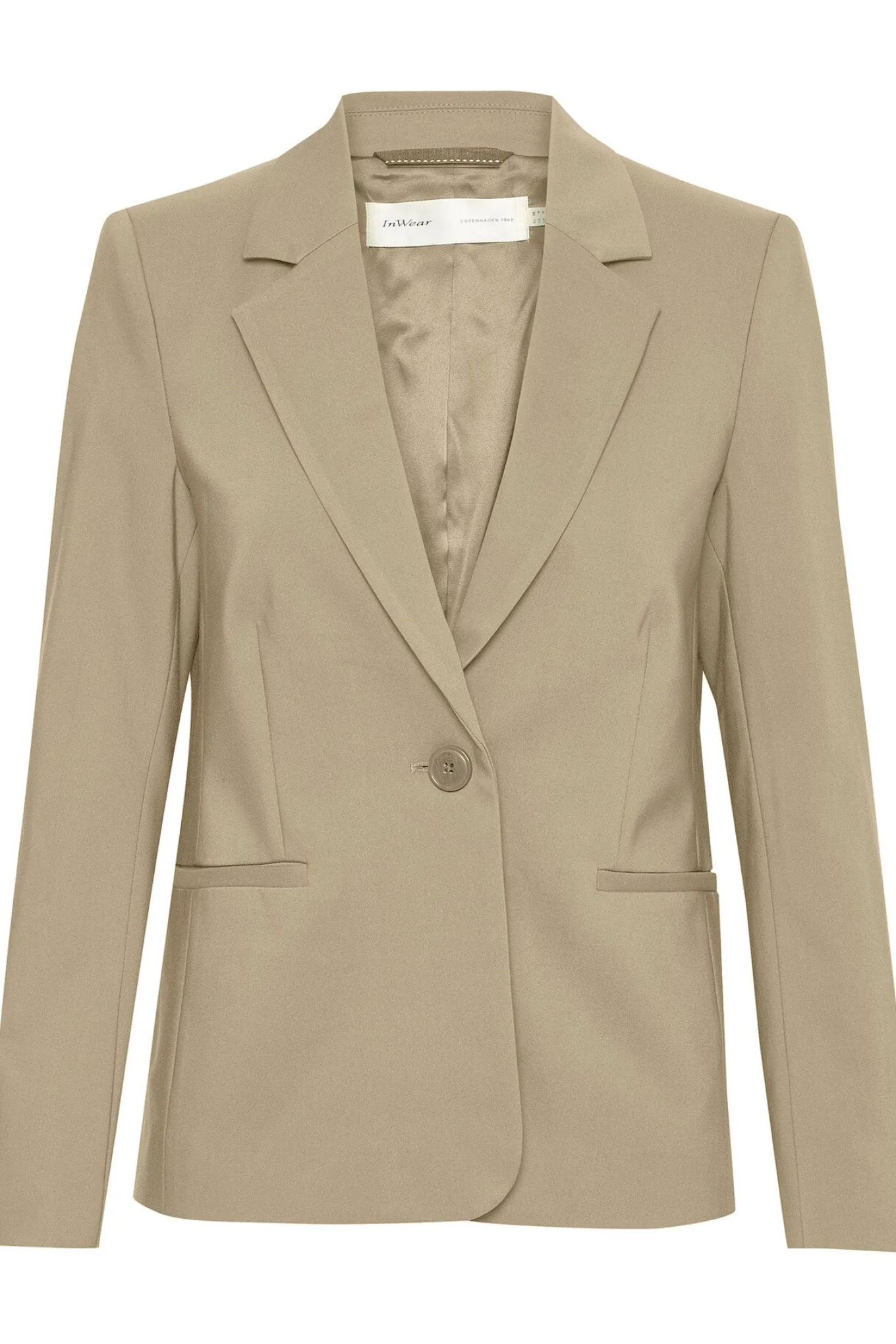 OBS! Fjernlager. Levering kan blive forlænget med 1-2 dage, hvis varen ikke findes i vores butik lige nu.En flot klassisk blazer fra InWear med lidt ekstra længde, lommeflapper og knaplukning i fronten.