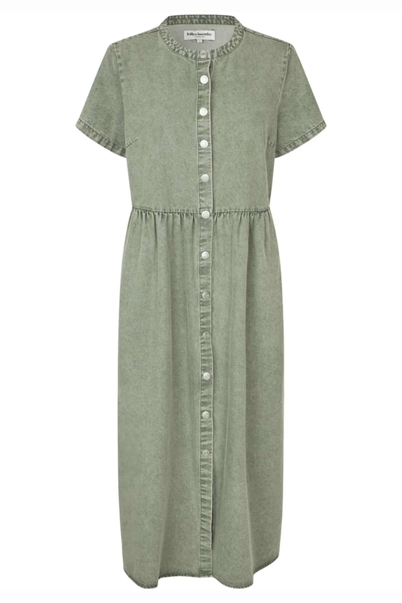 Få et friskt og trendy udtryk med denne kjole fra Lollys Laundry i farven 49 Dusty Green. Den er lavet af blødt bomuld og viskose, og er perfekt til enhver anledning.