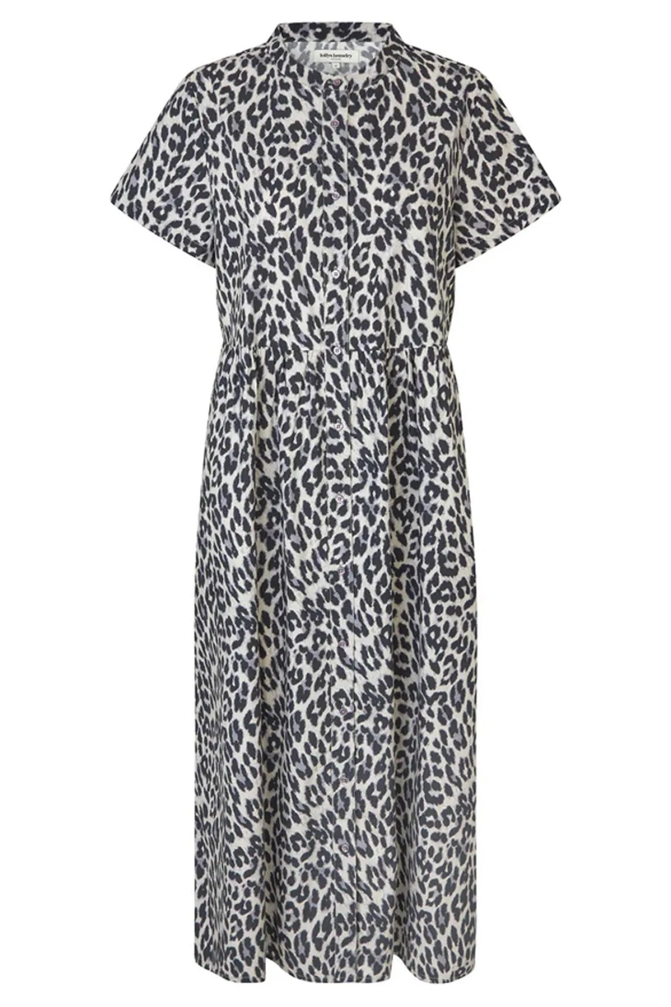 - OBS! Fjernlager. Levering kan blive forlænget med 2-3 dage, hvis varen ikke findes i vores butik lige nu.Smuk og alsidig kjole fra Lollys Laundry, perfekt til både hverdag og særlige lejligheder. Kjolen er fremstillet i et let og komfortabelt materiale, prydet med et trendy, gråt leopardmønster, der giver den et moderne og iøjnefaldende look. Med sin løse pasform og korte ærmer er kjolen designet til at give maksimal komfort og bevægelsesfrihed, mens den samtidig skaber et feminint og elegant udtryk. Den har knaplukning til taljen foran, som tilføjer et klassisk twist, og den let markerede talje fremhæver din figur på en smigrende måde.