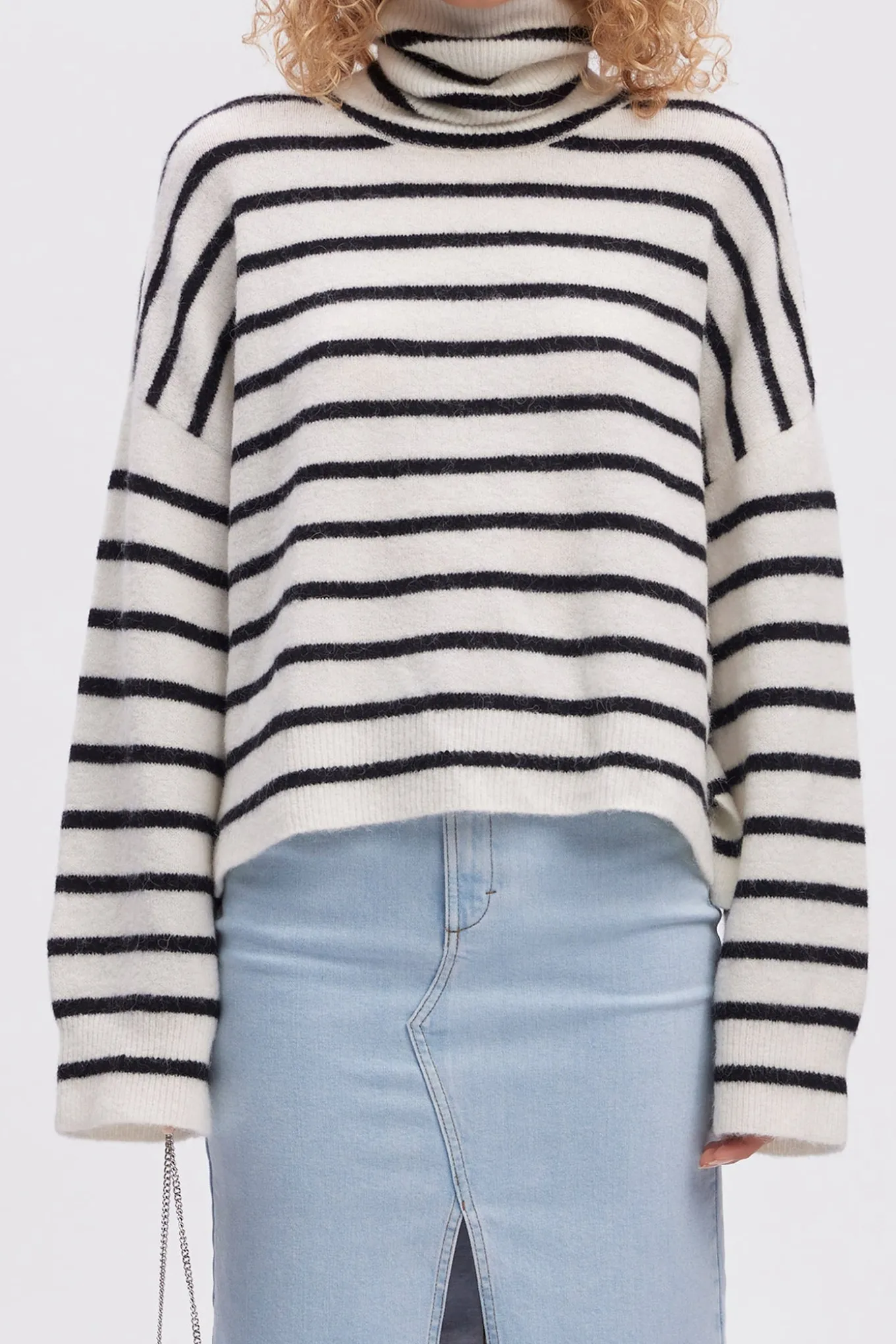 - Model: Alphagz Rollneck Striped Noos Strik 10909345 Ivory Black Striped