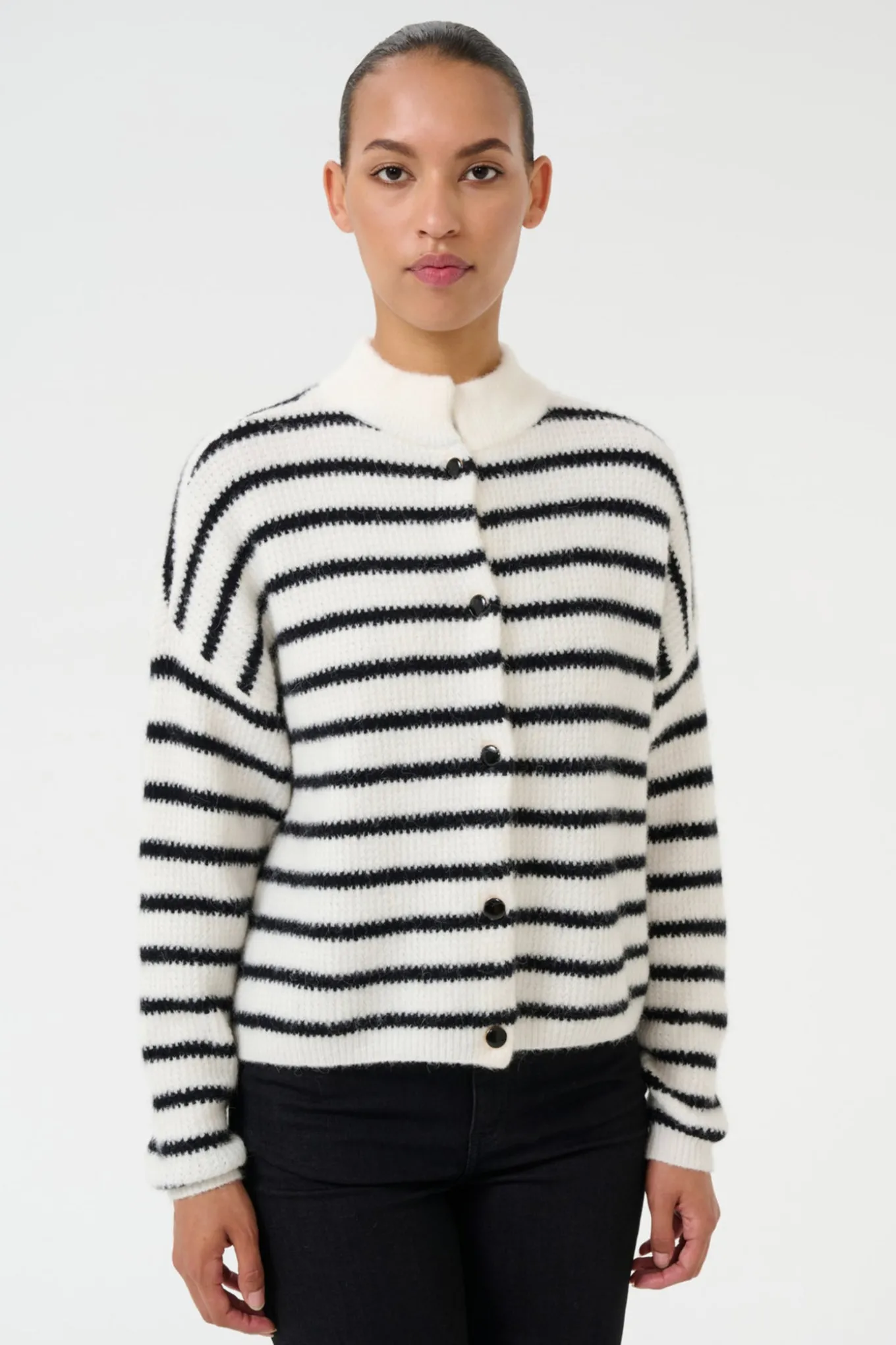 - Model: Alphagz Short Cardigan Noos Strik 10905931 Ivory Black Striped