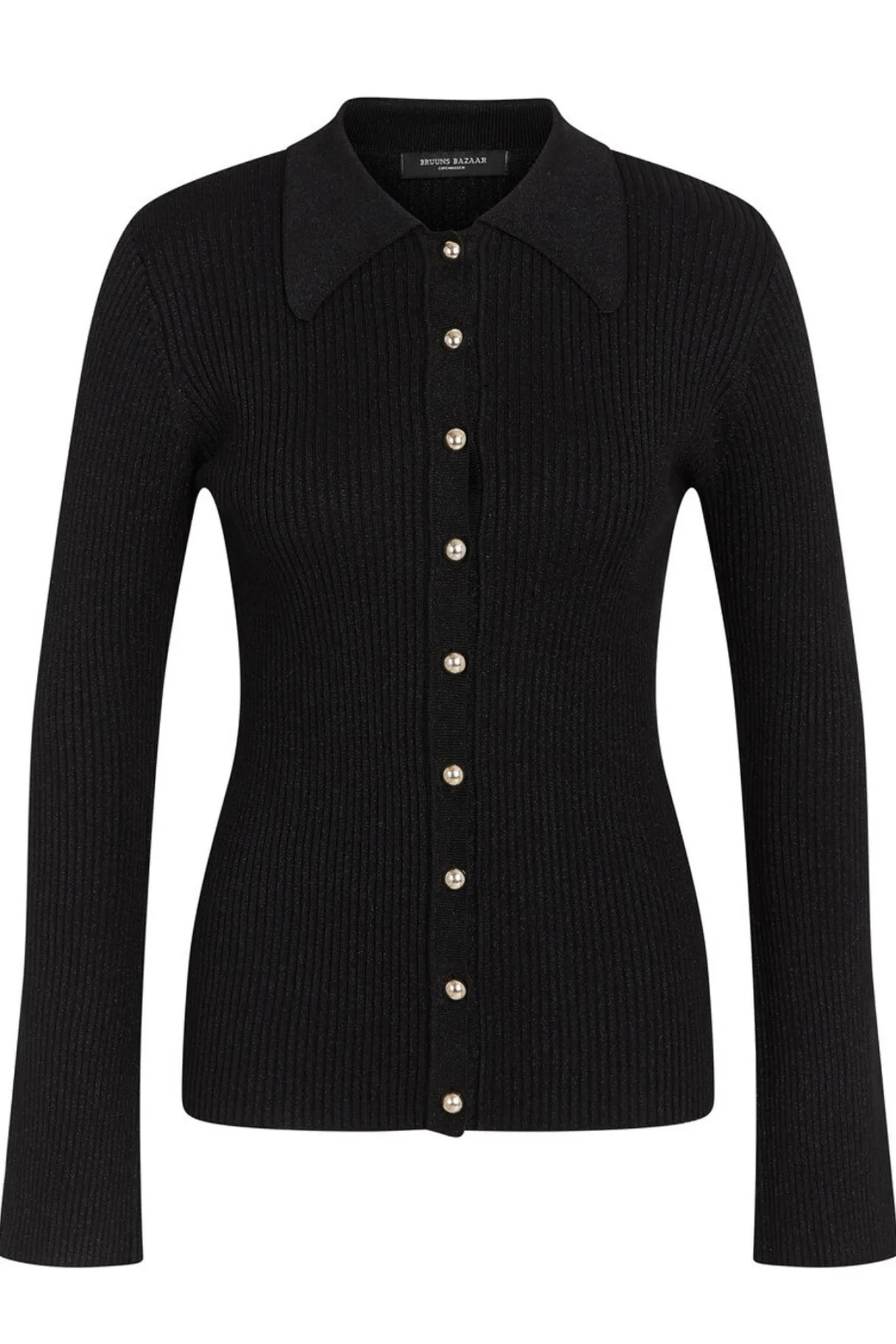OBS! Fjernlager. Levering kan blive forlænget med 2-3 dage, hvis varen ikke findes i vores butik lige nu.Fin strikket cardigan fra Bruuns Bazaar med lange ærmer, en blød krave i halsen og flotte knapper langs fronten.