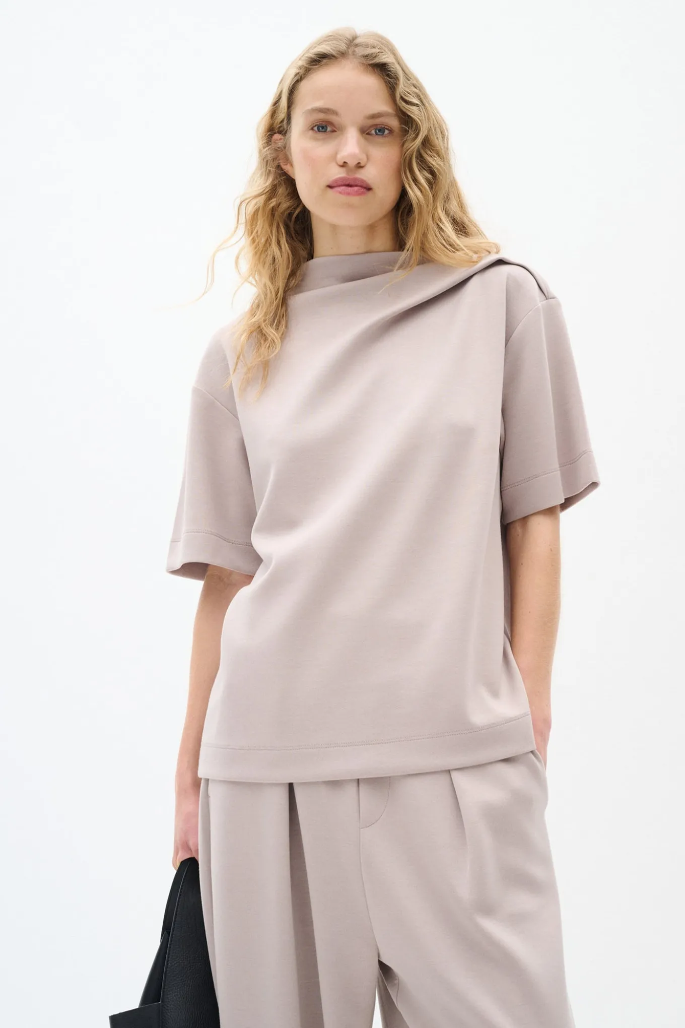 OBS! Fjernlager. Levering kan blive forlænget med 2-3 dage, hvis varen ikke findes i vores butik lige nu.Elegant top fra InWear med ½ lange ærmer, en flot kvalitet og smukke draperet effekter over skulderen.