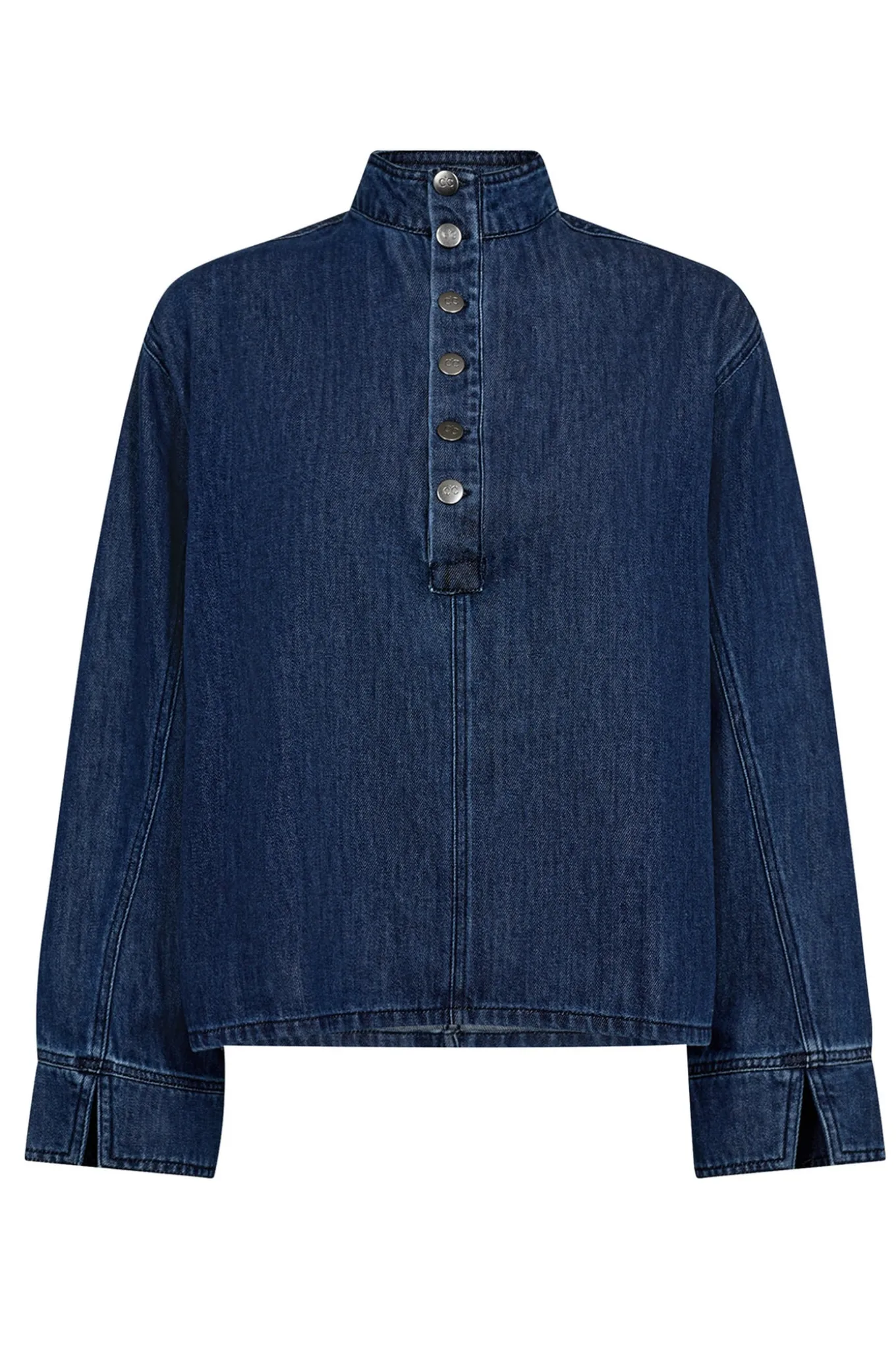 Denne bluse fra CO’COUTURE er et must-have i garderoben. Den er lavet i en flot denim blå farve og har en unik placket detalje som giver et elegant touch. Perfekt til enhver lejlighed og tidløst design fra CO’COUTURE.