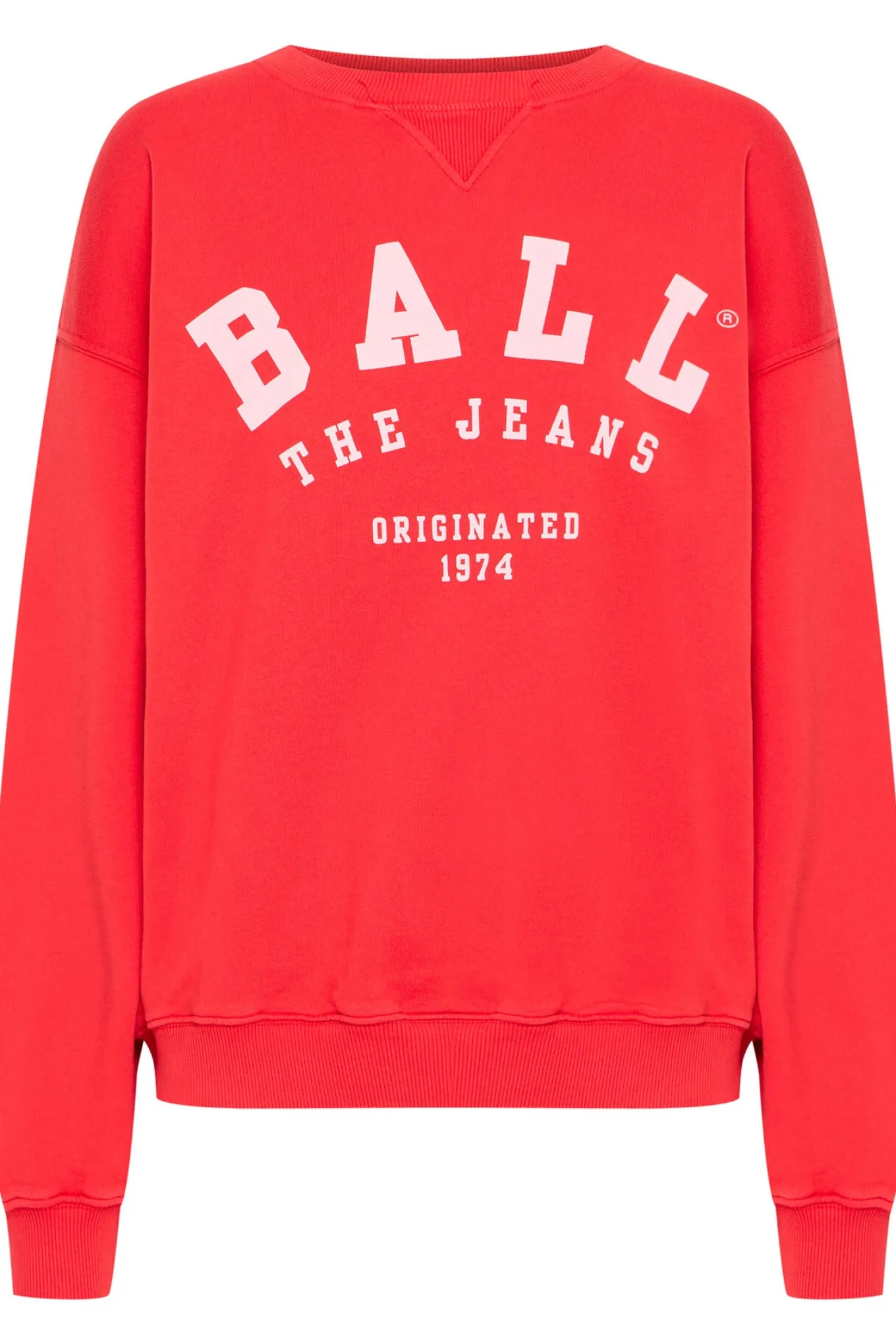 OBS! Fjernlager. Levering kan blive forlænget med 2-3 dage, hvis varen ikke findes i vores butik lige nu.Lækker sweatshirt fra Ball med lange ærmer, rund halsudskæring og et cool print på brystet.