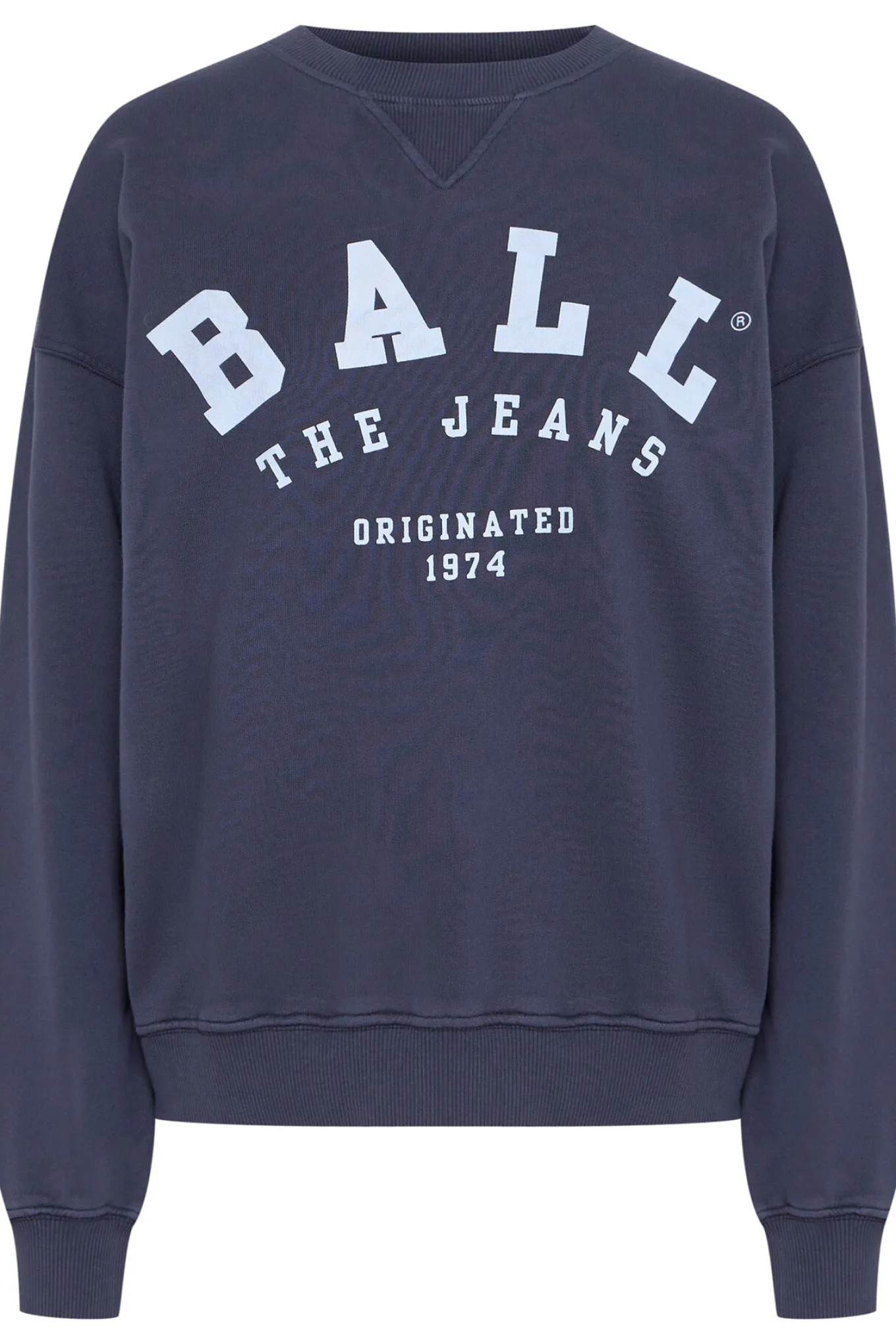 OBS! Fjernlager. Levering kan blive forlænget med 2-3 dage, hvis varen ikke findes i vores butik lige nu.Lækker sweatshirt fra Ball med lange ærmer, rund halsudskæring og et cool print på brystet.