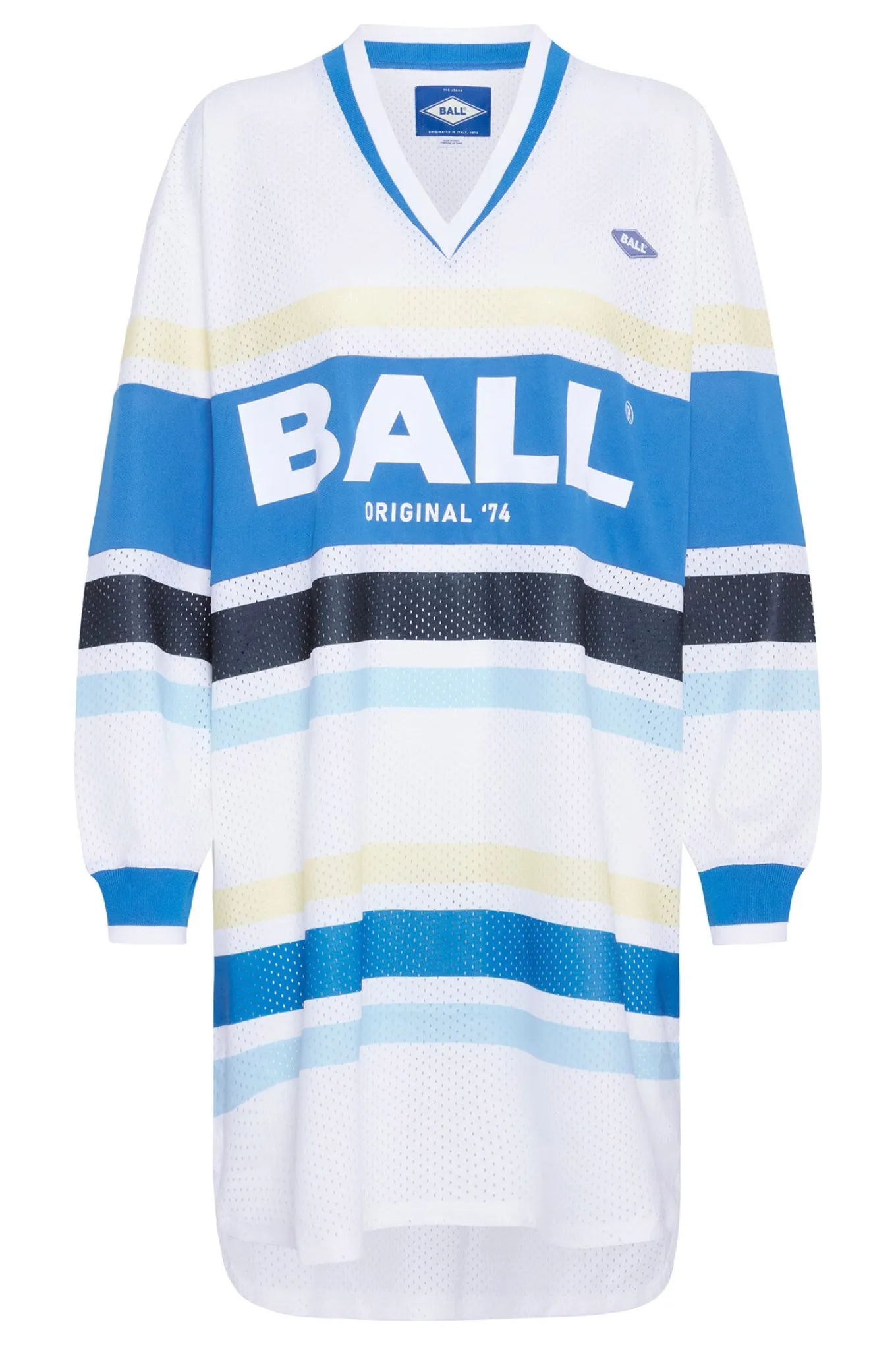 OBS! Fjernlager. Levering kan blive forlænget med 2-3 dage, hvis varen ikke findes i vores butik lige nu.Cool og sporty kjole fra Ball med lange ærmer, v-udskæring i halsen og et smart print med logo på brystet.