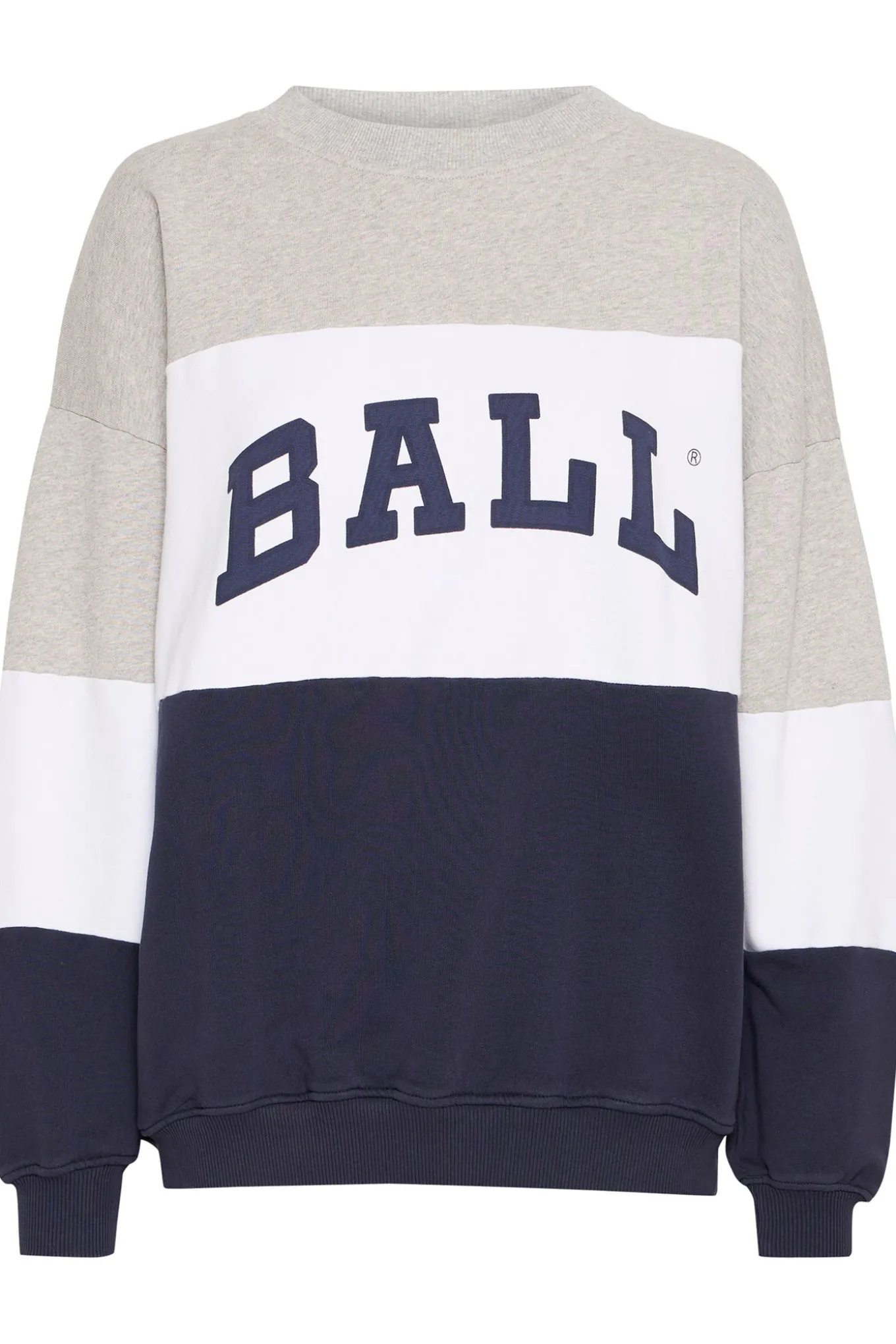 OBS! Fjernlager. Levering kan blive forlænget med 2-3 dage, hvis varen ikke findes i vores butik lige nu.Sporty sweatshirt fra Ball med lange ærmer, rund hals og brede ribkanter.Sweatshirten har også en lækker kvalitet og smart broderi på brystet.