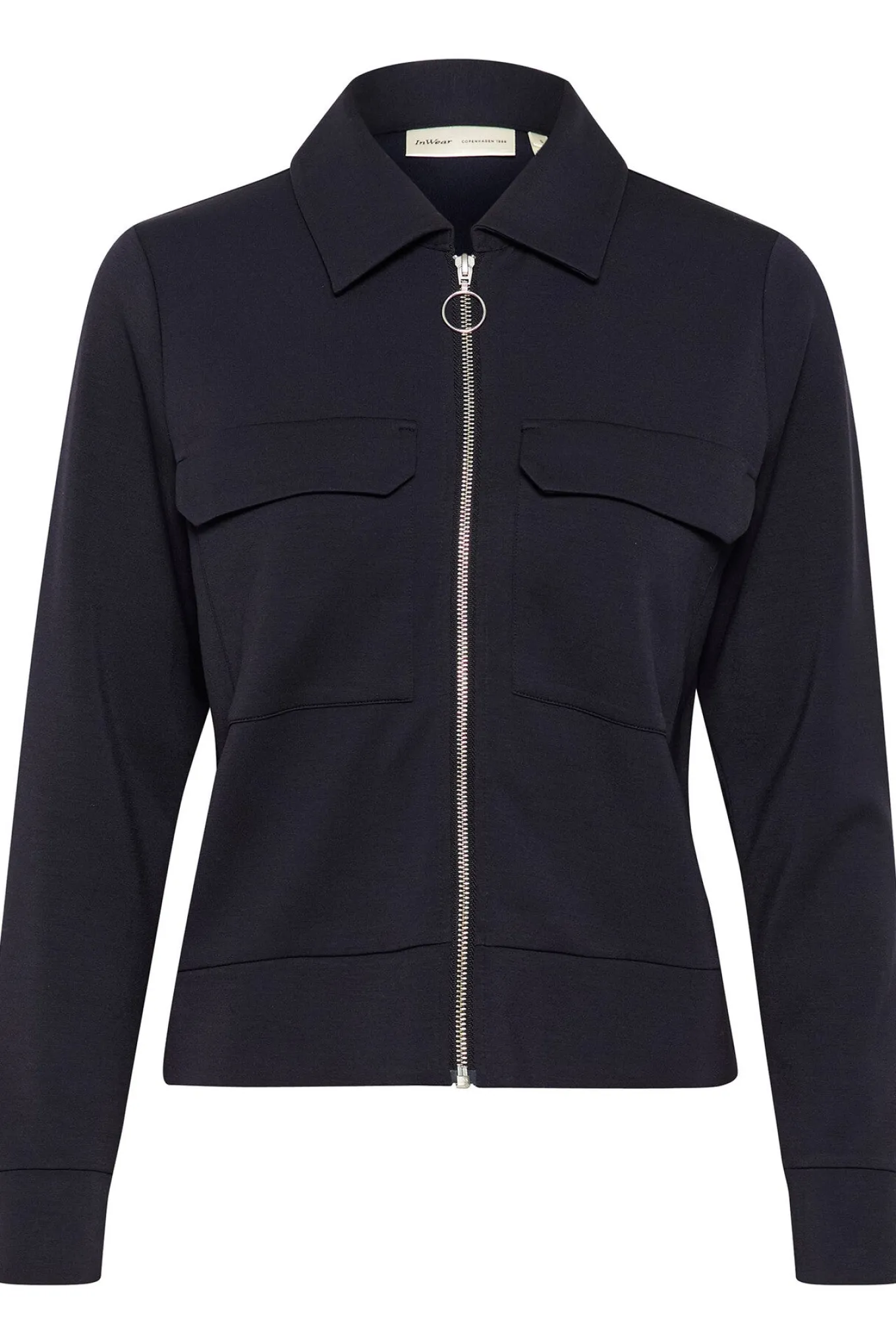 OBS! Fjernlager. Levering kan blive forlænget med 1-2 dage, hvis varen ikke findes i vores butik lige nu.Smart cardigan fra InWear med lange ærmer, krave i halsen og lynlåslukning langs fronten. Den har også fine lommer på brystet og en lækker blød modal kvalitet.