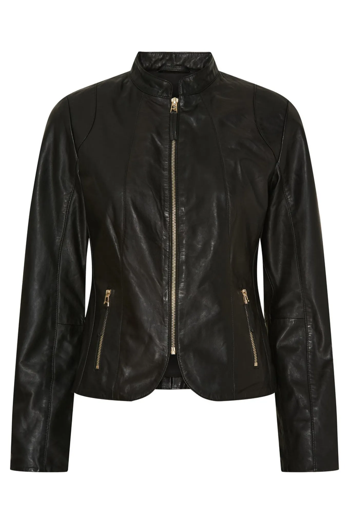 Bliv klar til efterår med denne lækre skindjakke fra BTFCPH. Den er i en elegant sort farve med fine detaljer i lysguld og lavet af det blødeste lamb malli. Perfekt til enhver lejlighed.