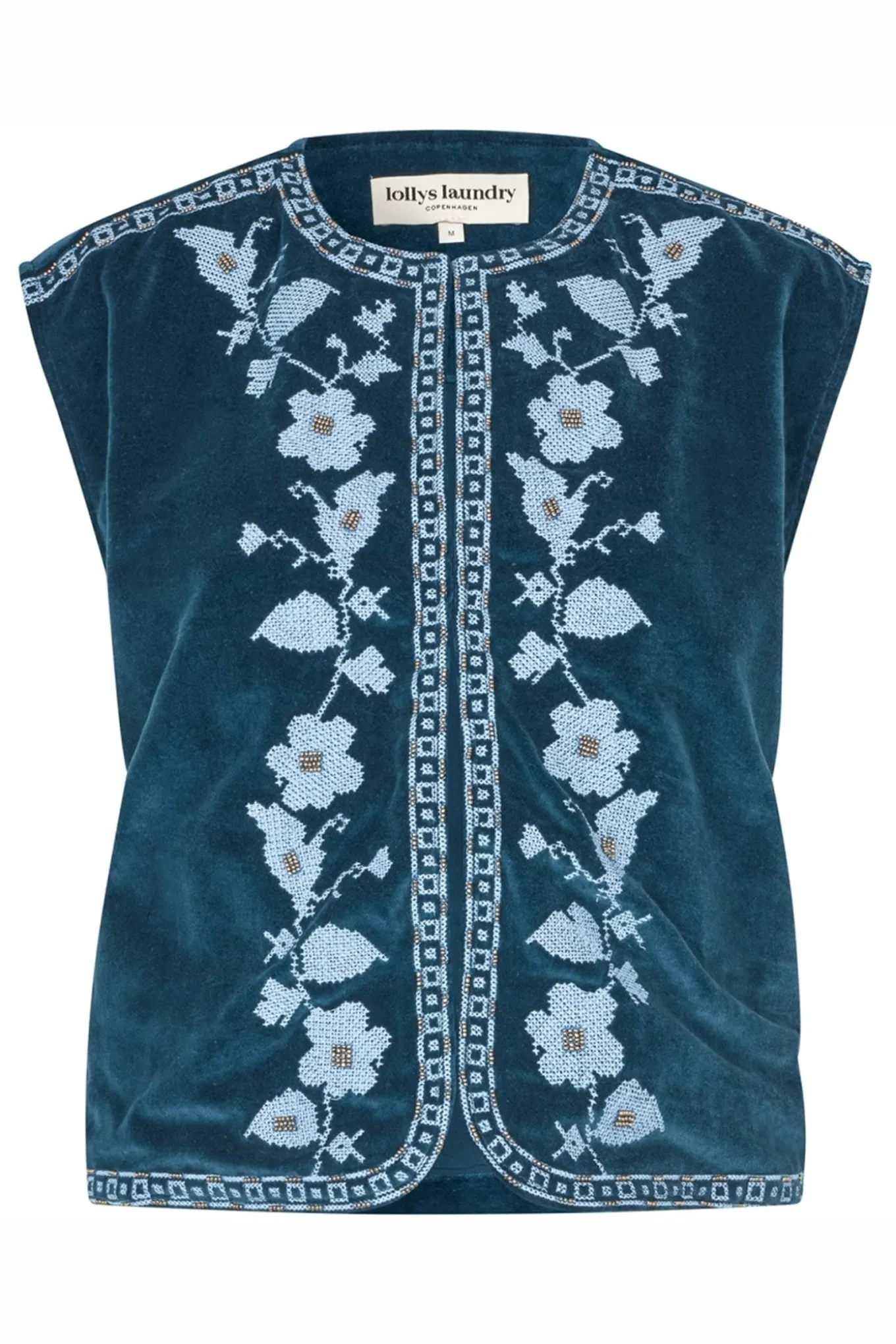 Skab et tidløst og alsidigt look med denne blå vest fra Lollys Laundry. Fremstillet af 100% bomuld og foret med 100% bomuld, er den perfekt til enhver lejlighed.