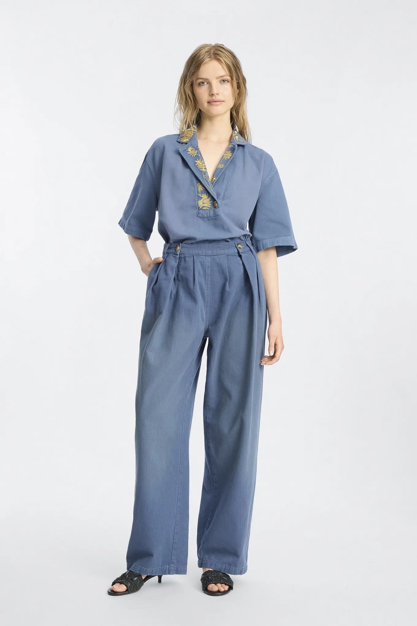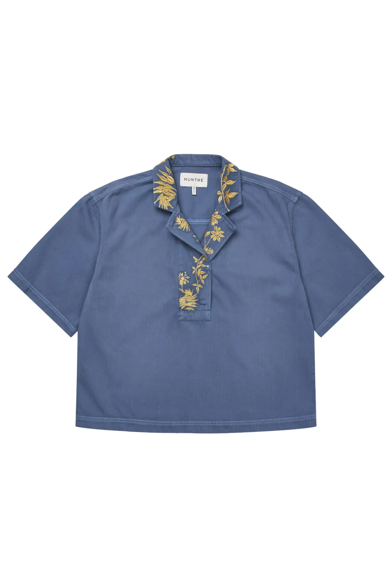 Skab et elegant og tidløst look med denne blå top fra Munthe. Lavet af kvalitetsmaterialer, vil den være et perfekt valg til enhver lejlighed.