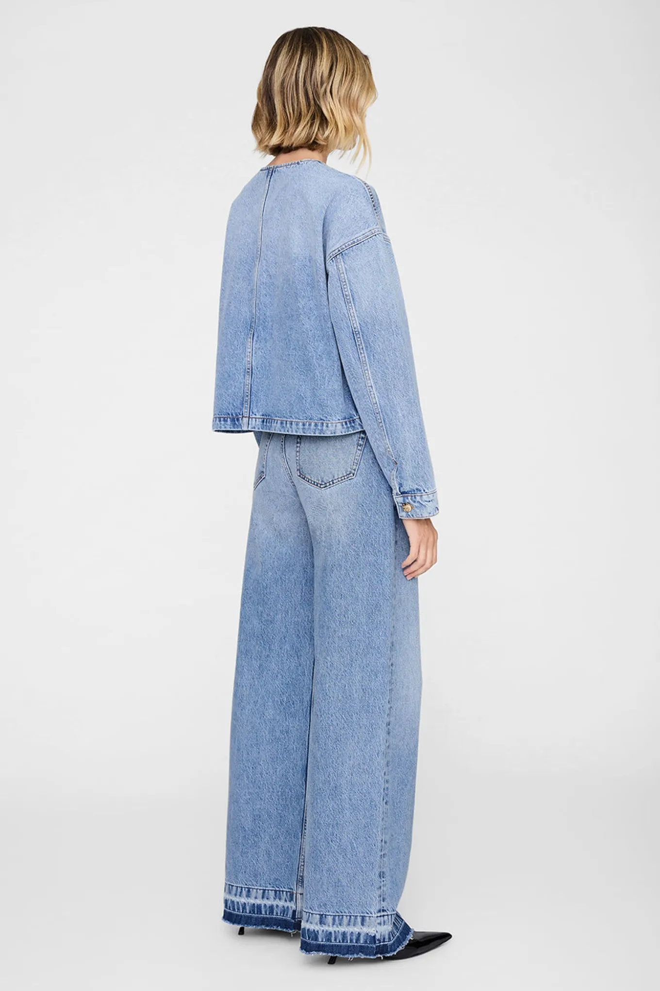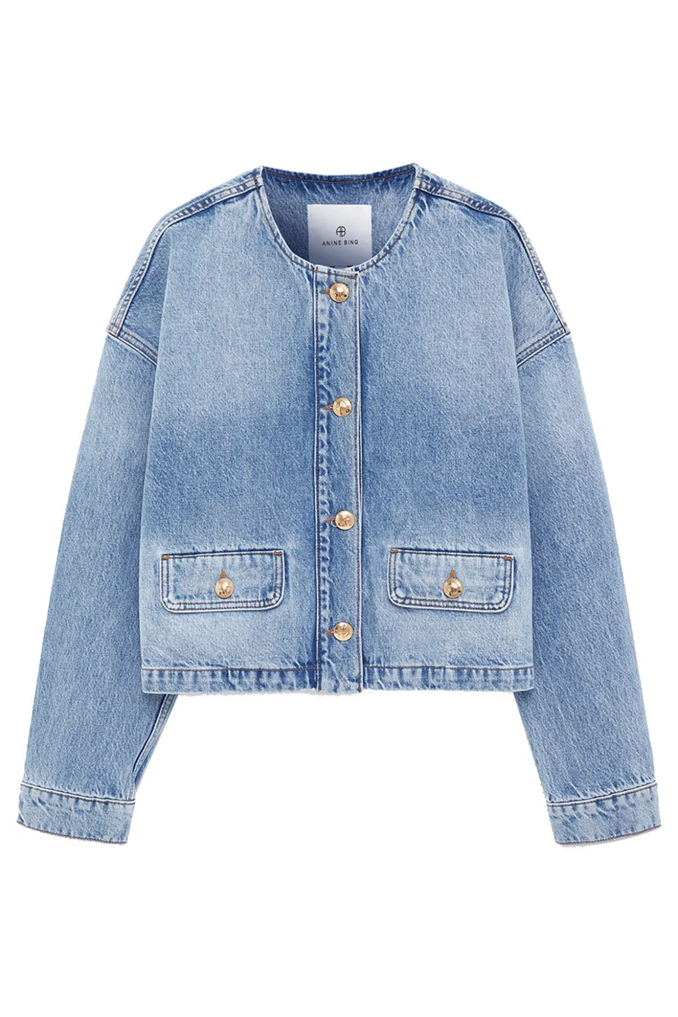 Omslut dig selv i blødhed med denne lette jakke fra ANINE BING. Den er lavet af 100% regenerativ bomuld og har en smuk lysblå farve. Perfekt til enhver sæson.