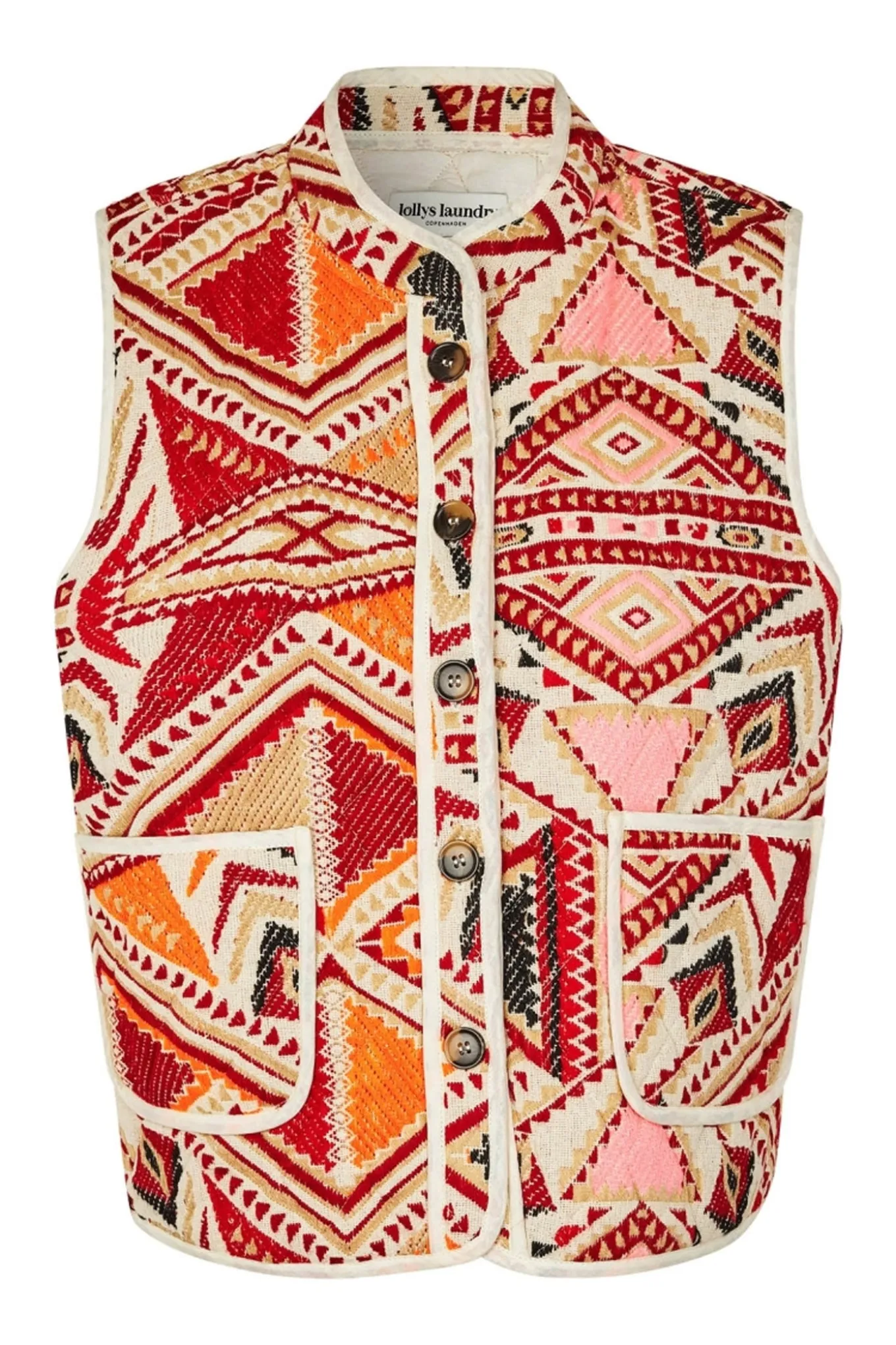 Opdater din garderobe med denne smarte veste fra Lollys Laundry. Den røde farve og det blandede materiale af bomuld og polyester giver en moderne og tidløs stil. Perfekt til enhver lejlighed.
