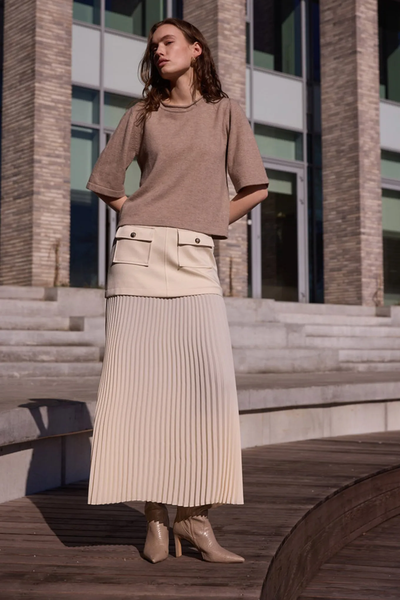 Opdater din garderobe med denne kitfarvede nederdel fra Bruuns Bazaar Women. Fremstillet af 78% polyester, 12% viscose og 10% materialer for et stilfuldt og alsidigt look.