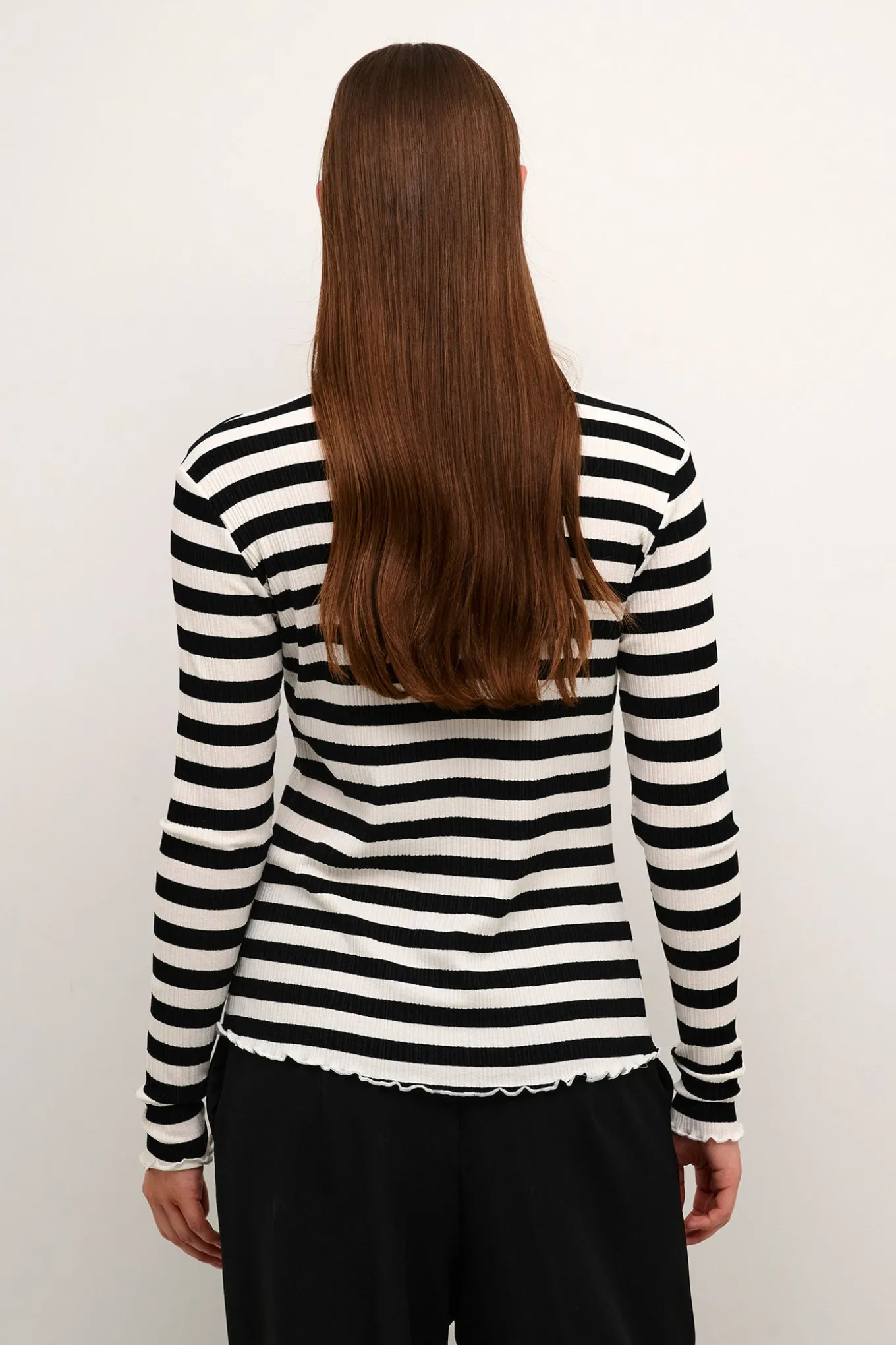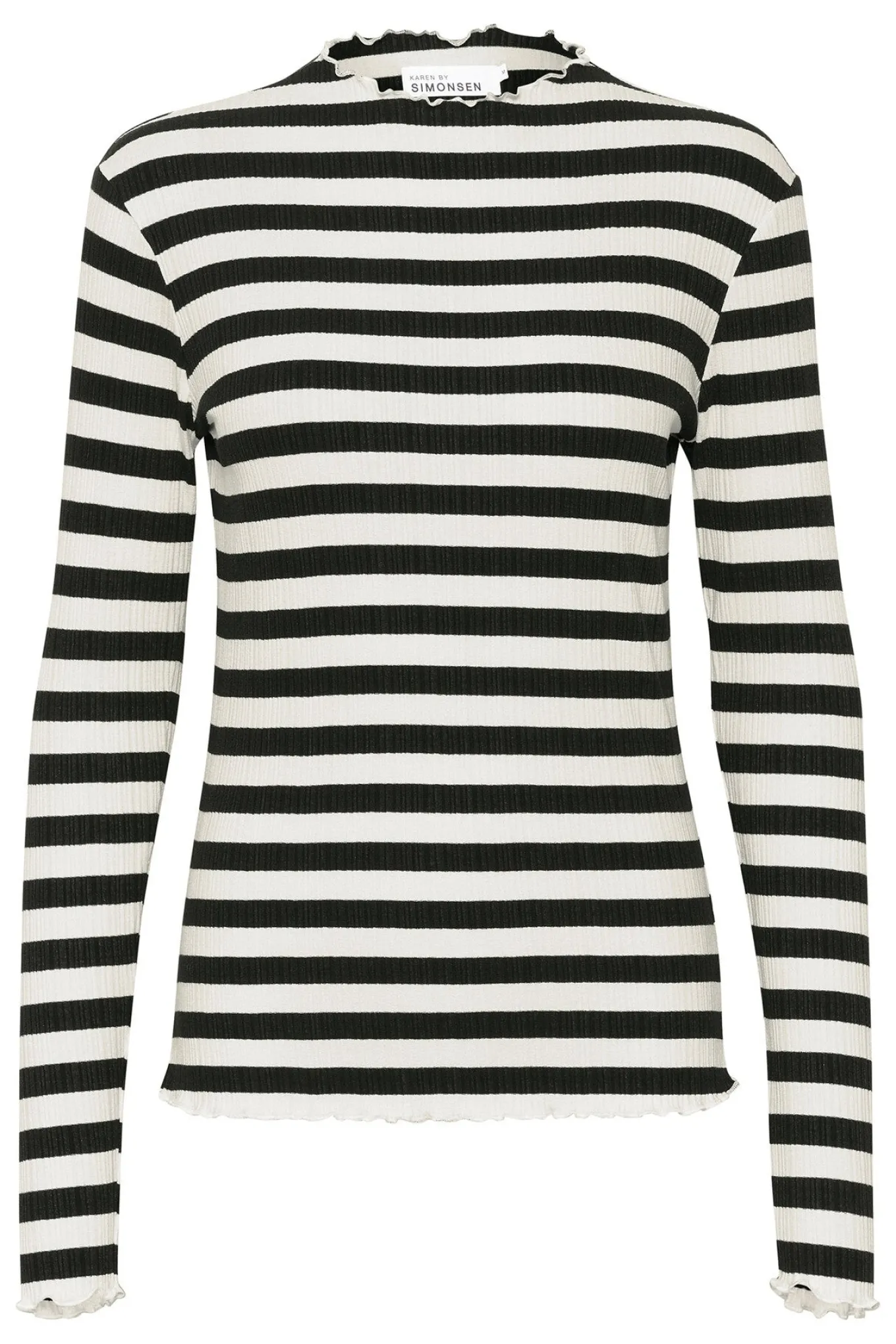 - Smart bluse fra Karen By Simonsen med lange ærmer, rund hals og et klassisk stribet print.Blusen har også fine krøllede kanter, en lækker blød kvalitet og en let tætsiddende pasform.
