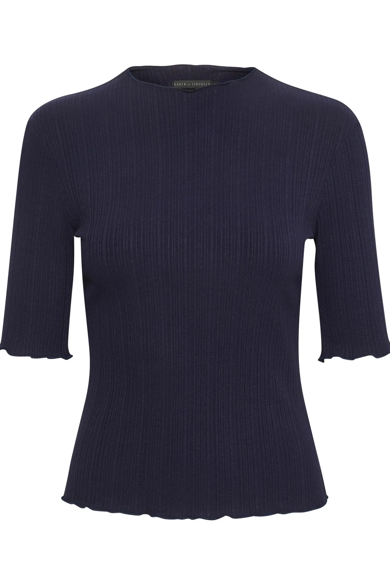OBS! Fjernlager. Levering kan blive forlænget med 1-2 dage, hvis varen ikke findes i vores butik lige nu.Flot t-shirt fra Karen By Simonsen med korte ærmer og fine rynkekanter.