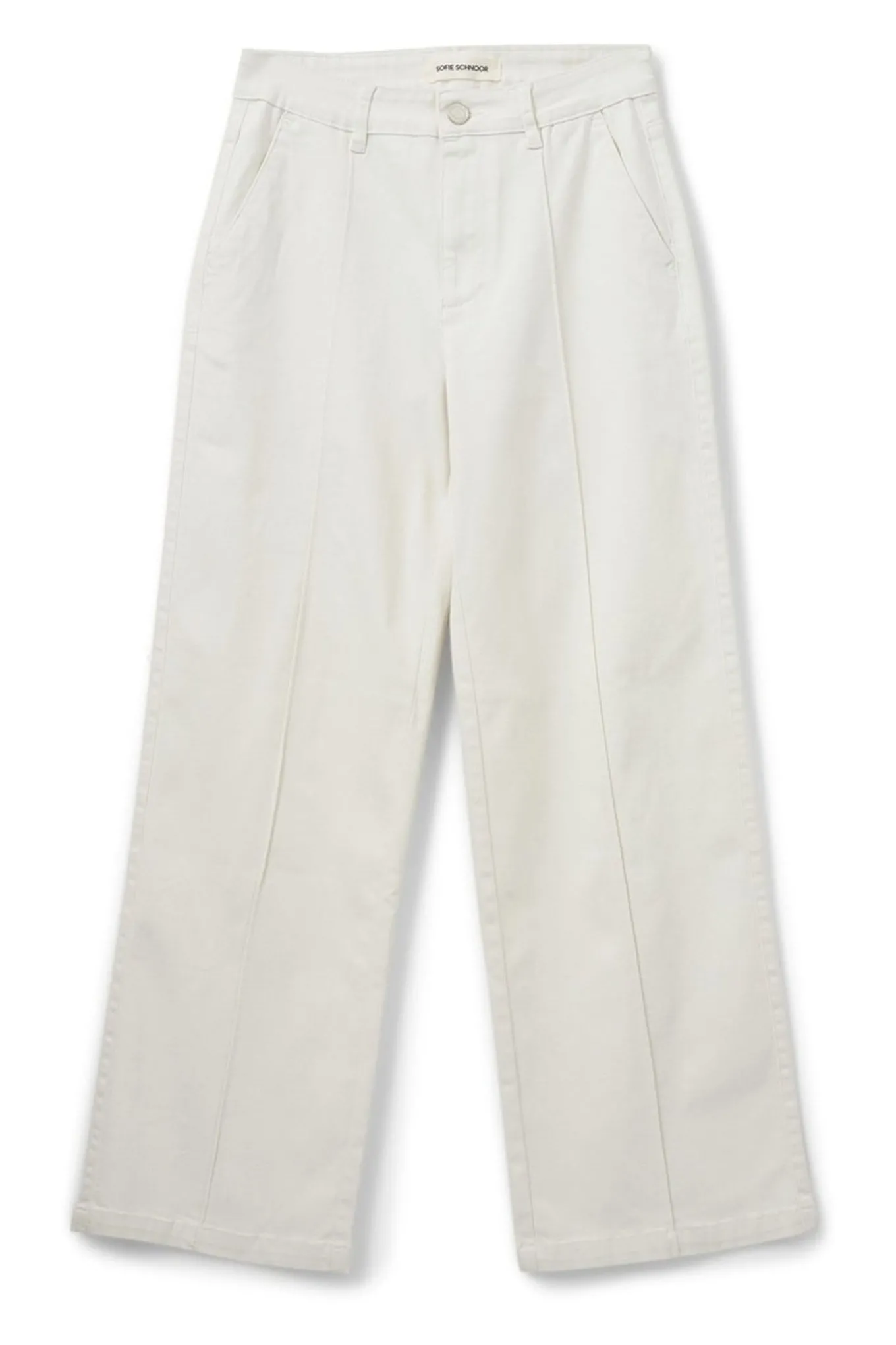 OBS! Fjernlager. Levering kan blive forlænget med 2-3 dage, hvis varen ikke findes i vores butik lige nu.Smarte bukser fra Sofie Schnoor med mid-rise talje, lidt vidde i benene og fine syninger langs fronten.