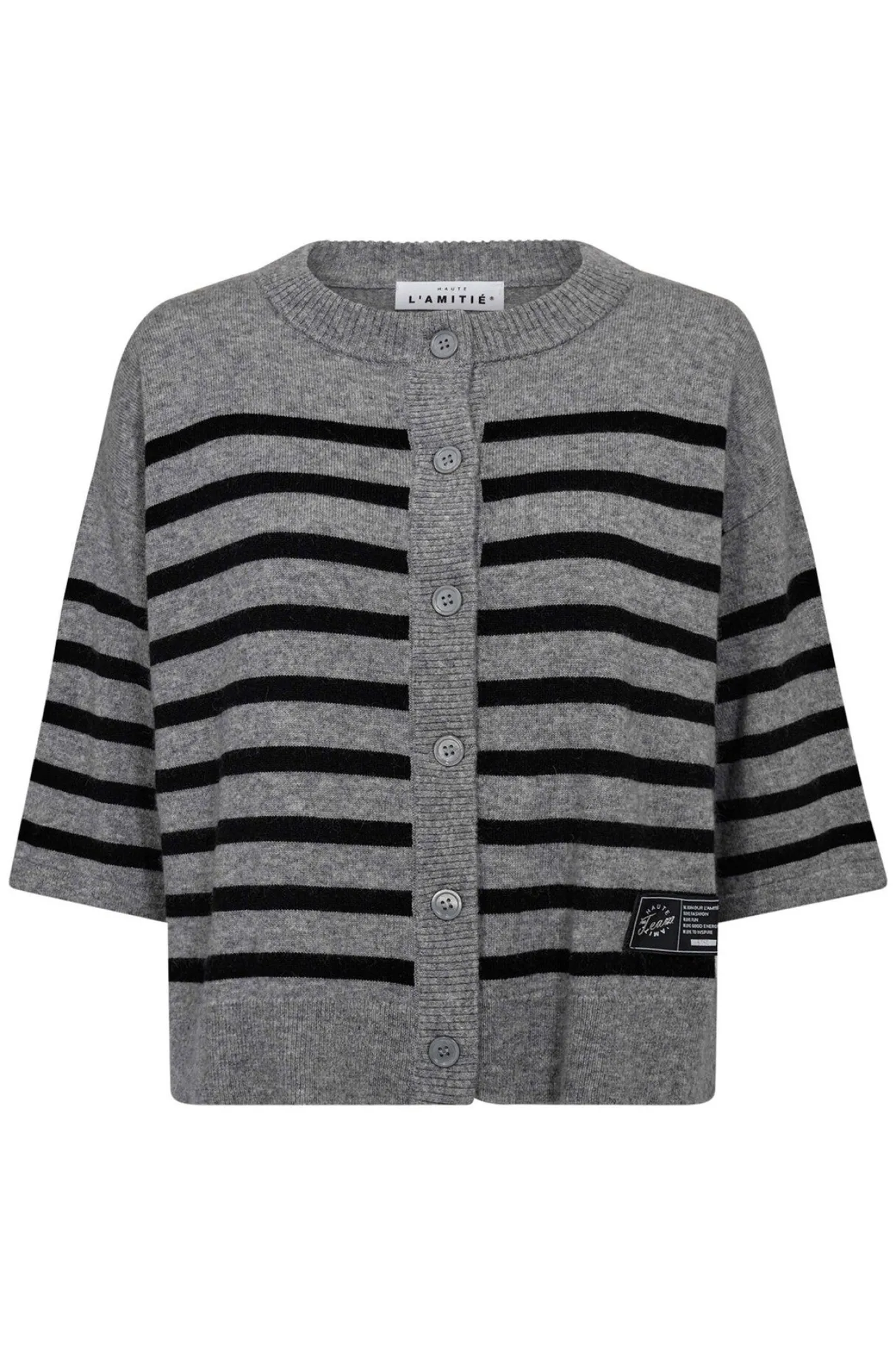 OBS! Fjernlager. Levering kan blive forlænget med 2-3 dage, hvis varen ikke findes i vores butik lige nu.Blød og lækker strik fra Haute L’Amitié med korte ærmer, rund hals og klassiske striber.