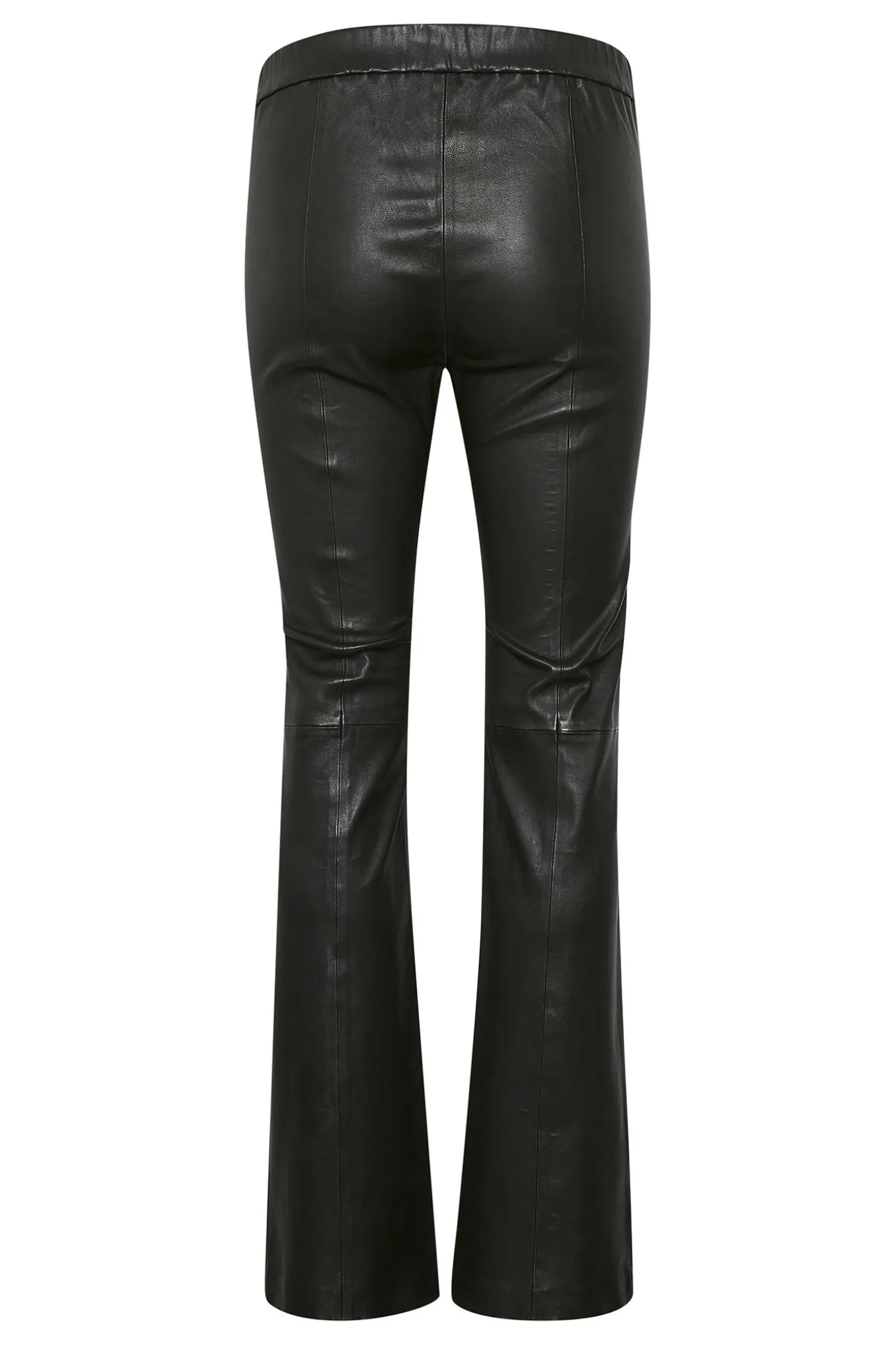 OBS! Fjernlager. Levering kan blive forlænget med 1-2 dage, hvis varen ikke findes i vores butik lige nu.Lækre og bløde skindbukser fra InWear med elastikkant i taljen, en flot slim-fit pasform og flare i bunden af benene der giver dem en rigtig smart silhuet.
