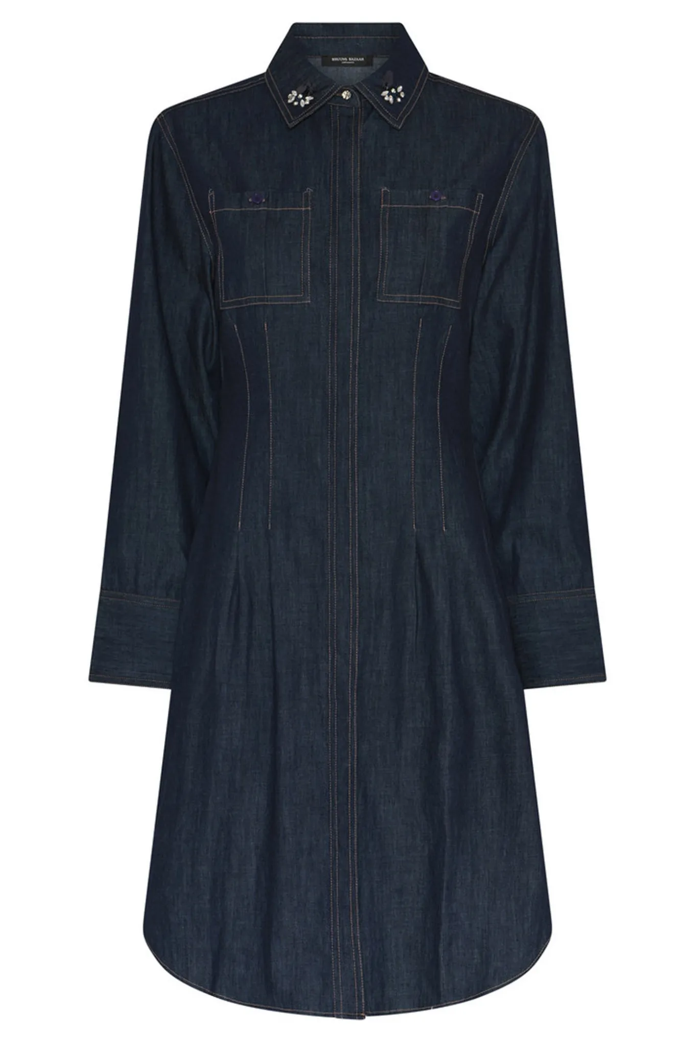 Flot denim kjole med en almindelig pasform, lange ærmer og ikonisk Bruuns Bazaar dekoration på kraven. Et tidløst stykke tøj med en moderne kant.