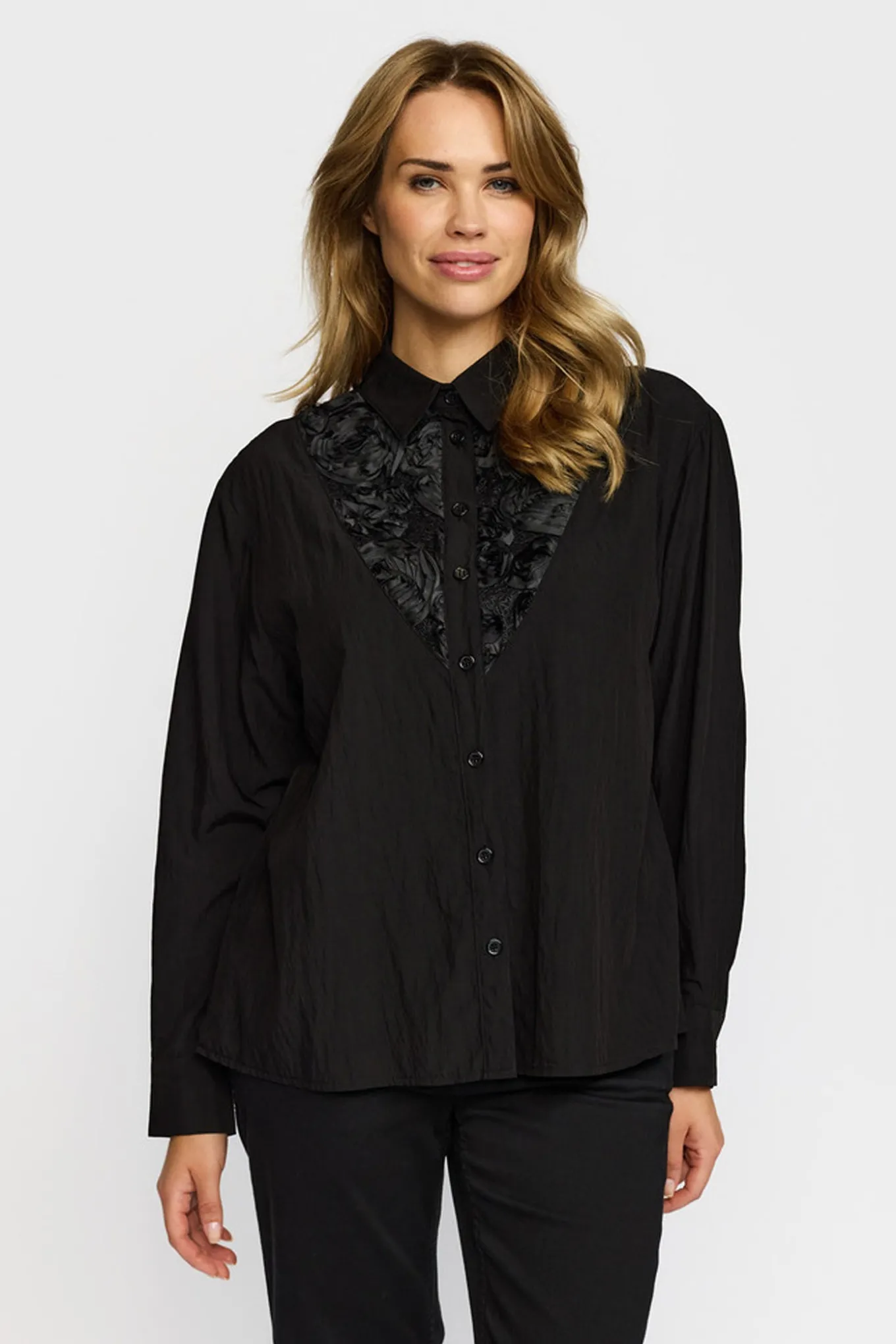 Skab et elegant og tidløst look med denne sorte skjorte fra 2-BIZ. Lavet af en blanding af viskose og polyamid, er den perfekt til enhver lejlighed.