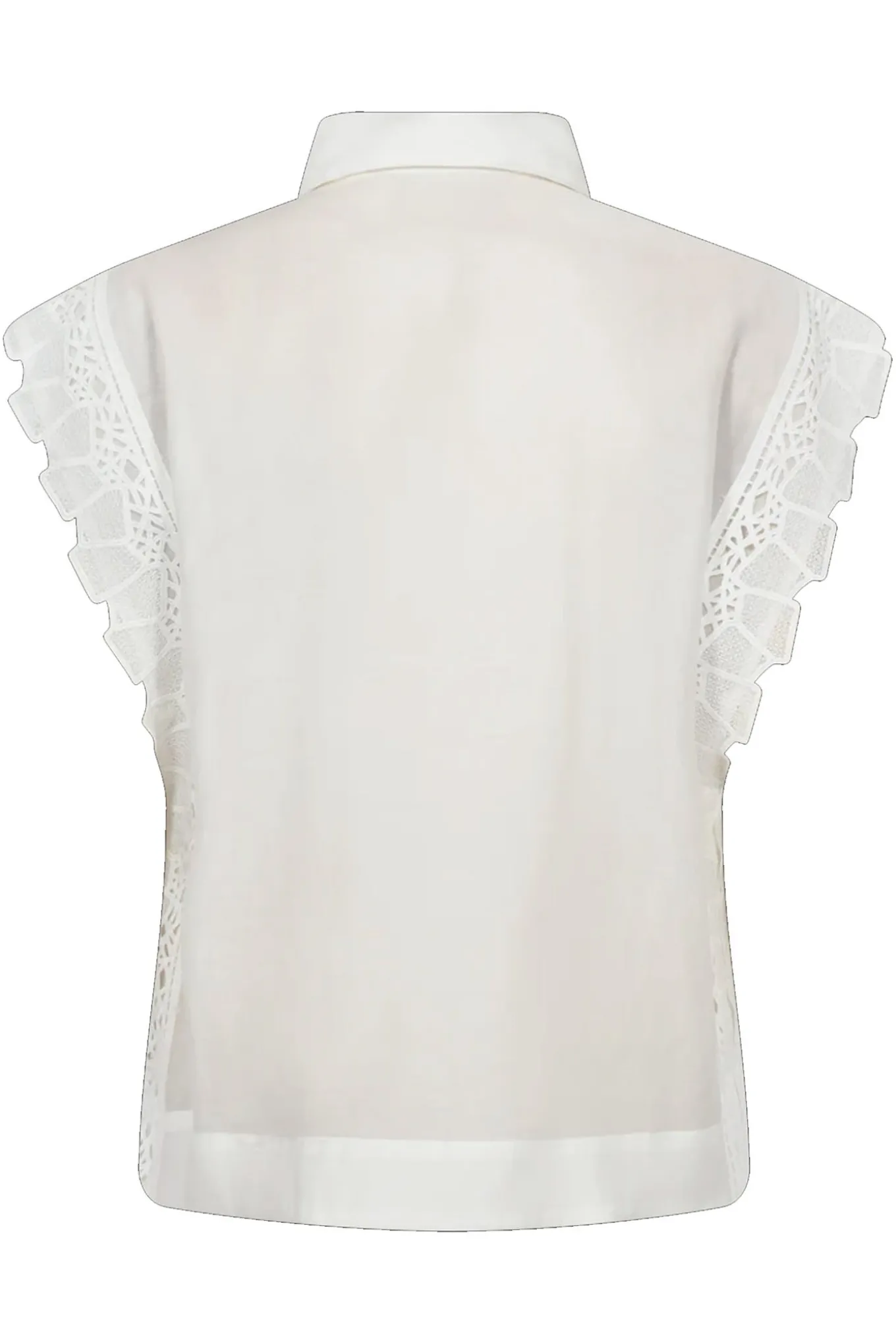 OBS! Fjernlager. Levering kan blive forlænget med 2-3 dage, hvis varen ikke findes i vores butik lige nu.Smuk skjorte fra Copenhagen Muse i den ikoniske, lækre kvalitet, som indeholder meget lyocell. Skjorten har korte æmer, skjult knaplukning på fronten samt cut-and-sew blonder, der giver et elegant sneak peek til huden.