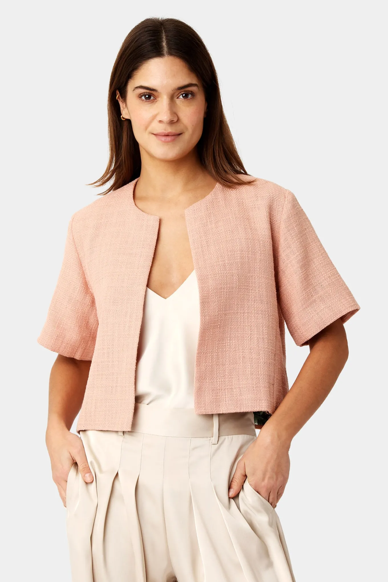 Opgrader din garderobe med denne elegante jakke fra Karmamia. I en smuk peach farve og lavet af 65% uld og 35% polyester, med et blødt 100% polyester foer.