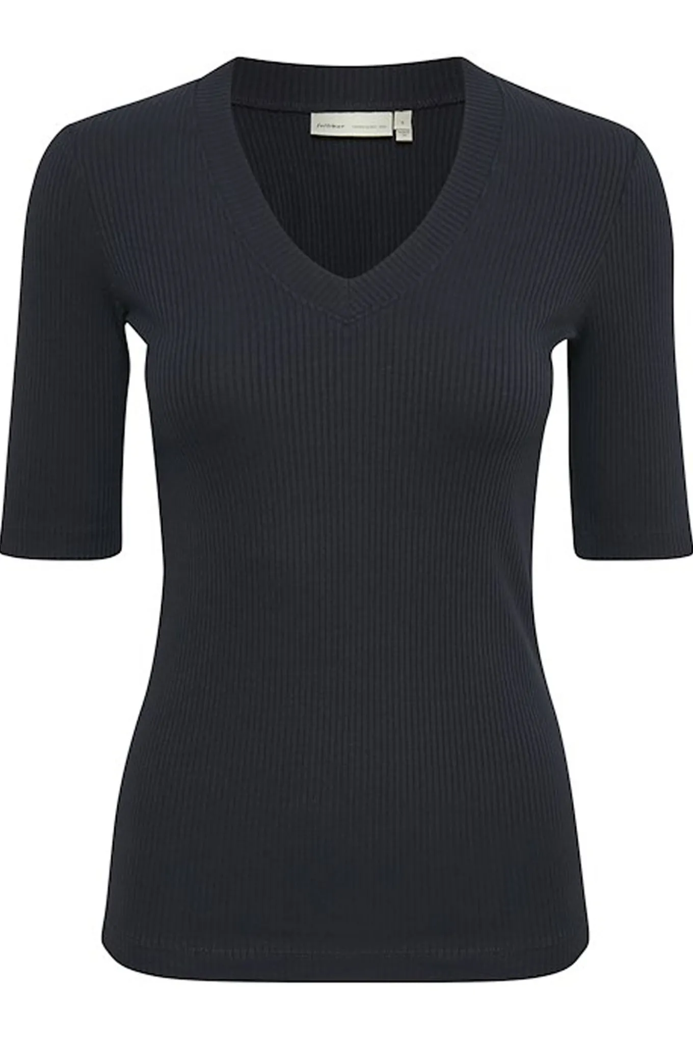 OBS! Fjernlager. Levering kan blive forlænget med 1-2 dage, hvis varen ikke findes i vores butik lige nu.Smart basis t-shirt fra InWear med ½ lange ærmer og blød v-hals.