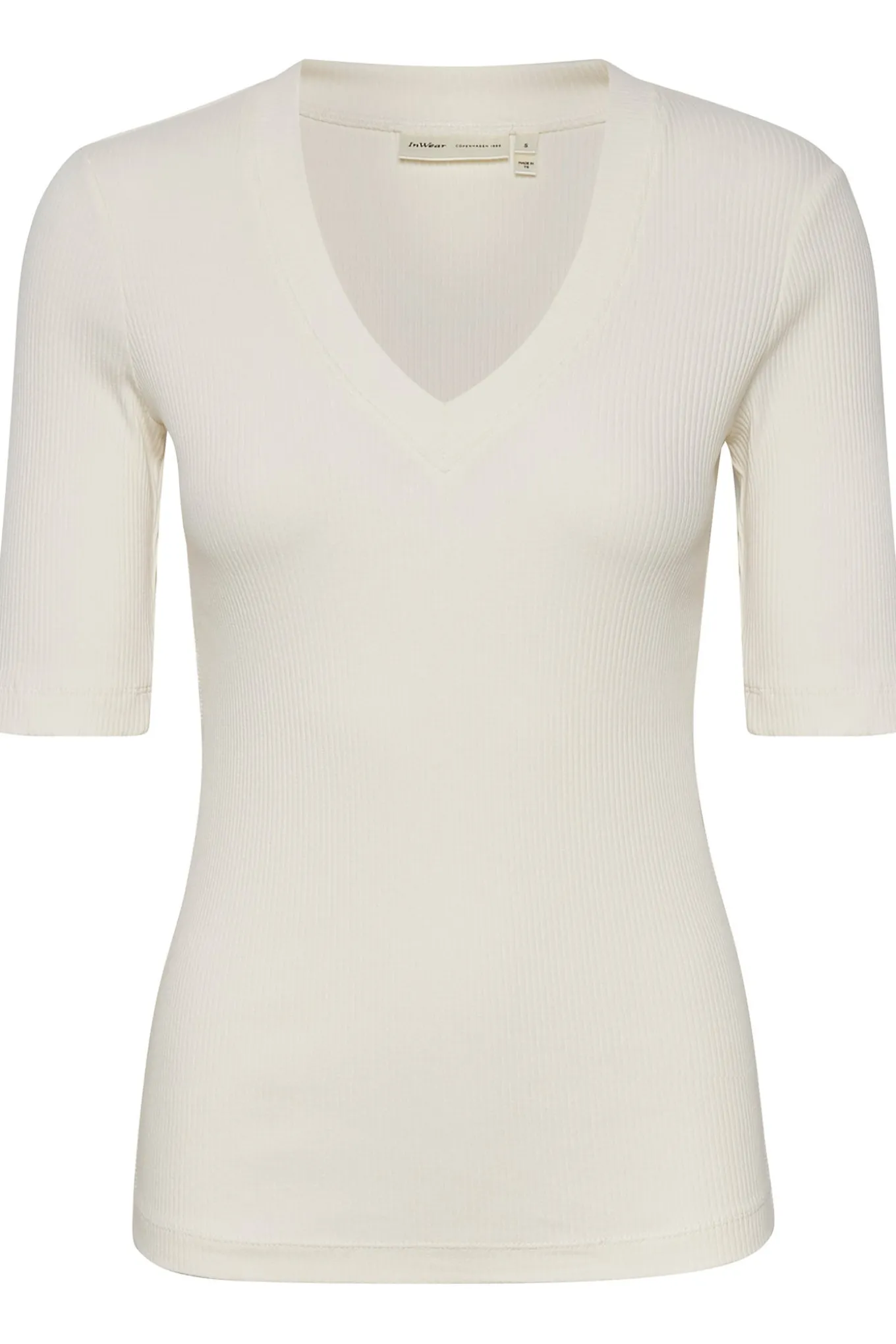 OBS! Fjernlager. Levering kan blive forlænget med 1-2 dage, hvis varen ikke findes i vores butik lige nu.Smart basis t-shirt fra InWear med ½ lange ærmer og blød v-hals.