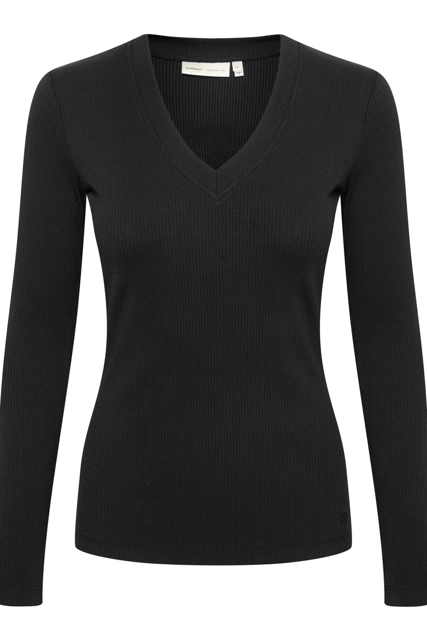 OBS! Fjernlager. Levering kan blive forlænget med 2-3 dage, hvis varen ikke findes i vores butik lige nu.Fin basis top fra InWear med v-udskæring, lange ærmer og en tætsiddende pasform.
