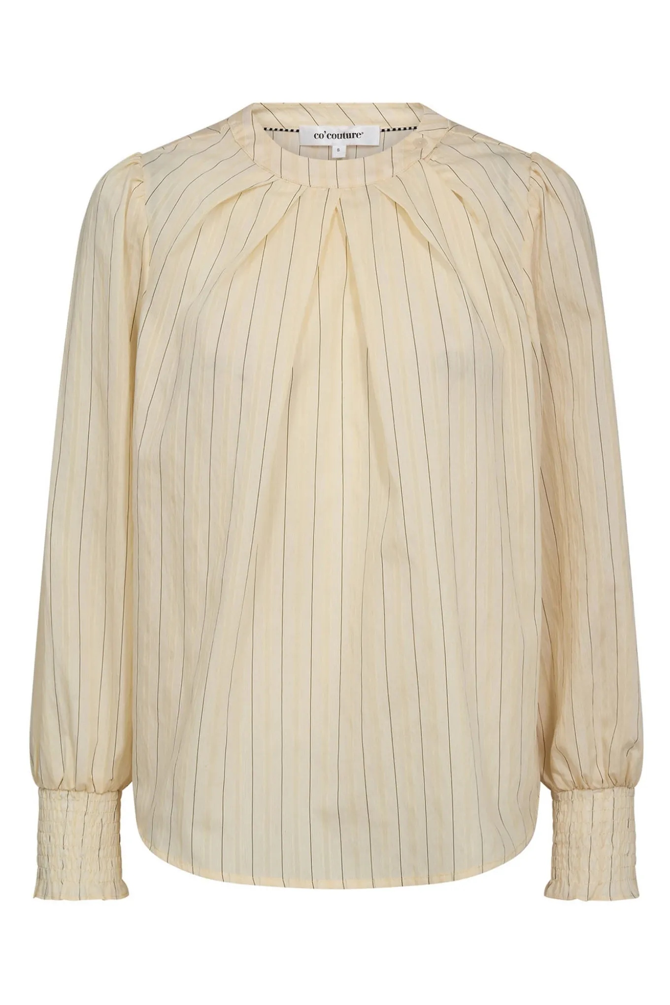Få et frisk og sommerligt look med denne lysegule bluse fra CO’COUTURE. Blusen er lavet af en blanding af bomuld, polyamid, polyester og lyocell, hvilket giver den en skøn og behagelig pasform. Perfekt til både hverdag og fest.