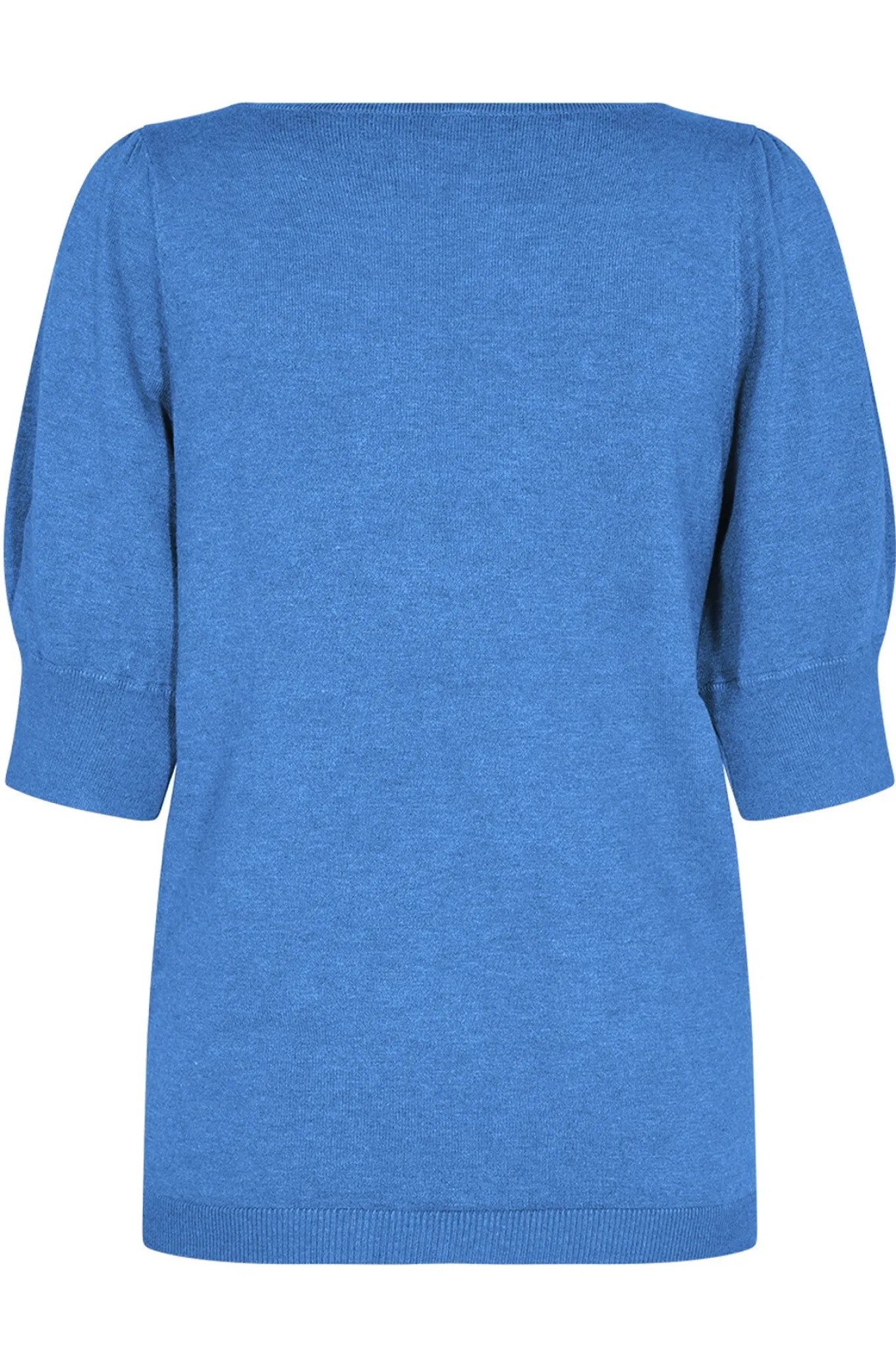 Blød og lækker strik fra Soyaconcept med korte ærmer, bådudskæring i halsen og et fint enkelt udtryk.