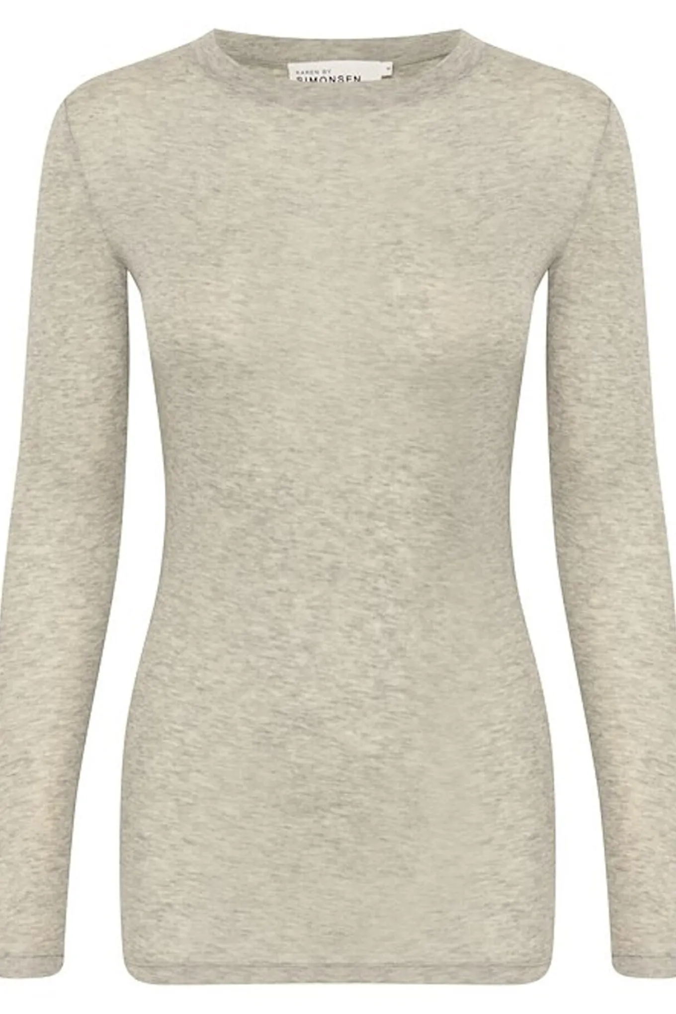 OBS! Fjernlager. Levering kan blive forlænget med 2-3 dage, hvis varen ikke findes i vores butik lige nu.Basis tee fra Karen By Simonsen med lange ærmer og rund hals.