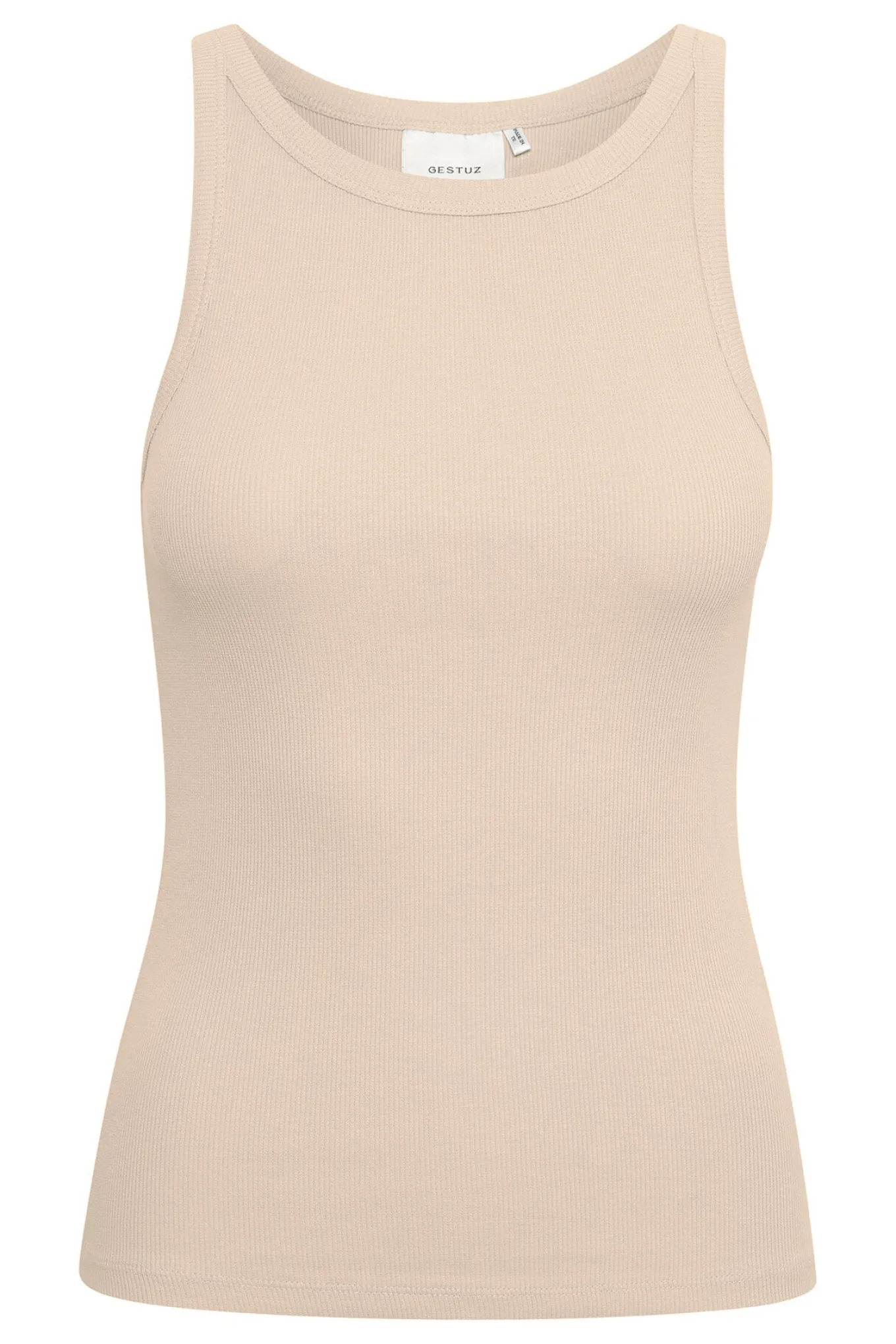OBS! Fjernlager. Levering kan blive forlænget med 2-3 dage, hvis varen ikke findes i vores butik lige nu.Smart basis top fra Gestuz i en fin ribbet kvalitet og tætsiddende pasform.
