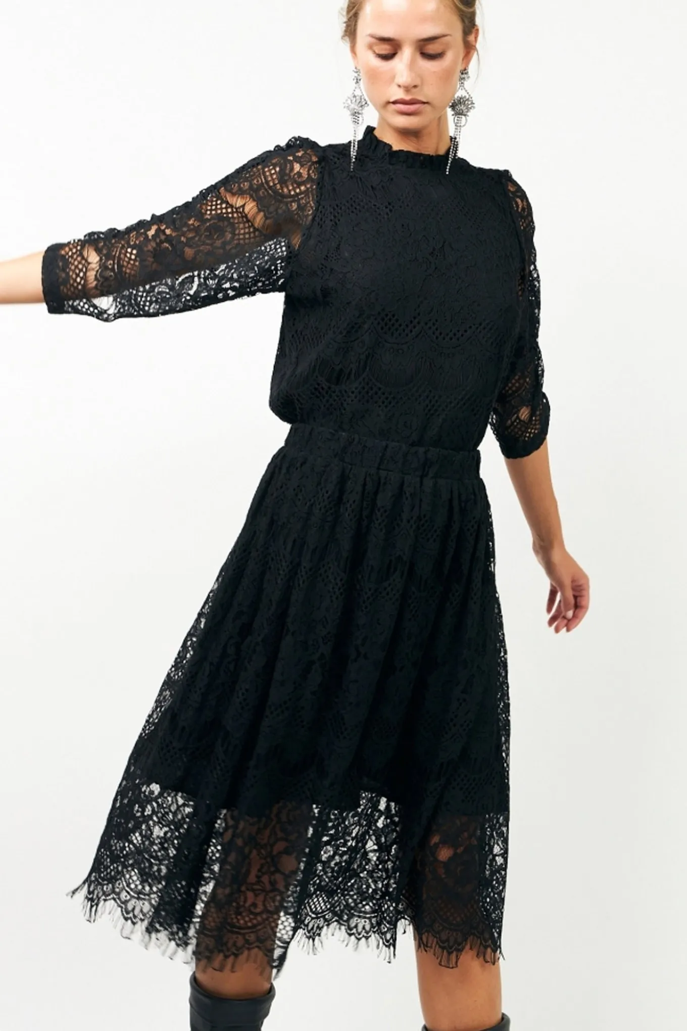 Få et sofistikeret og tidløst look med denne sorte nederdel fra Lollys Laundry. Fremstillet af blød bomuld og polyamid med en viskoseforing. Perfekt til enhver lejlighed.