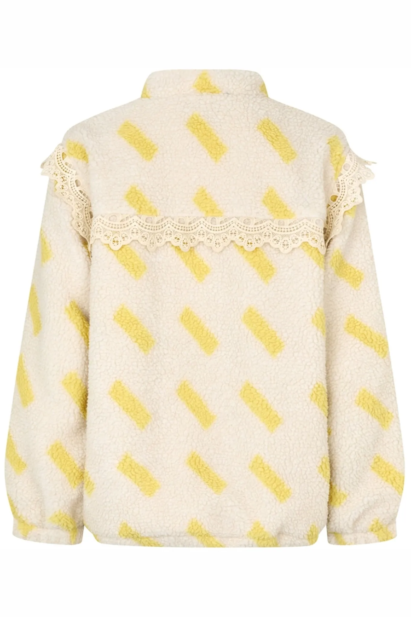 Holder dig varm og stilfuld i denne lette jakke fra Lollys Laundry. I en lys gul farve og lavet af blødt polyester med en behagelig bomuldsforing. Perfekt til hverdagsbrug.