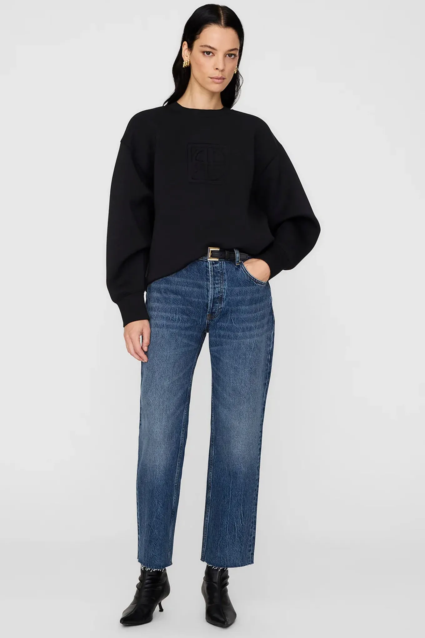 OBS! Fjernlager. Levering kan blive forlænget med 2-3 dage, hvis varen ikke findes i vores butik lige nu.Lækker sweatshirt fra Anine Bing med lange ærmer, rund hals og et smart monogram på fronten.