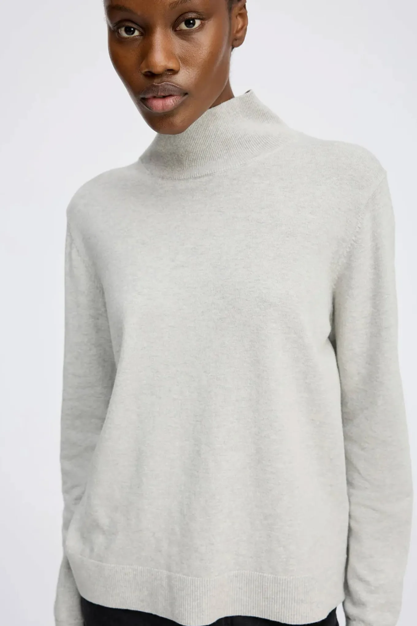 Med en cool grå farve og en blanding af 55% RWS Extrafine Merino og 45% bomuld er denne strik fra Munthe perfekt til enhver lejlighed. Et tidsløst og alsidigt valg til din garderobe.