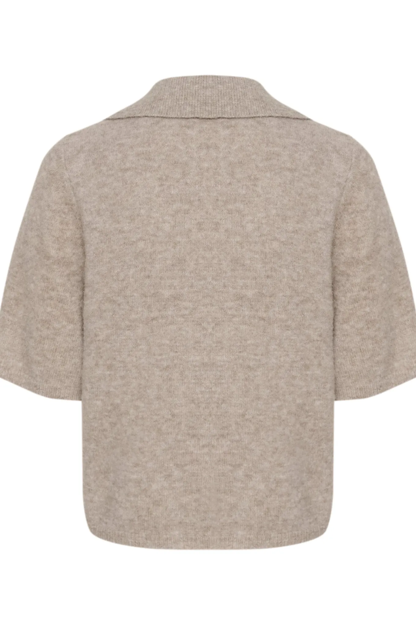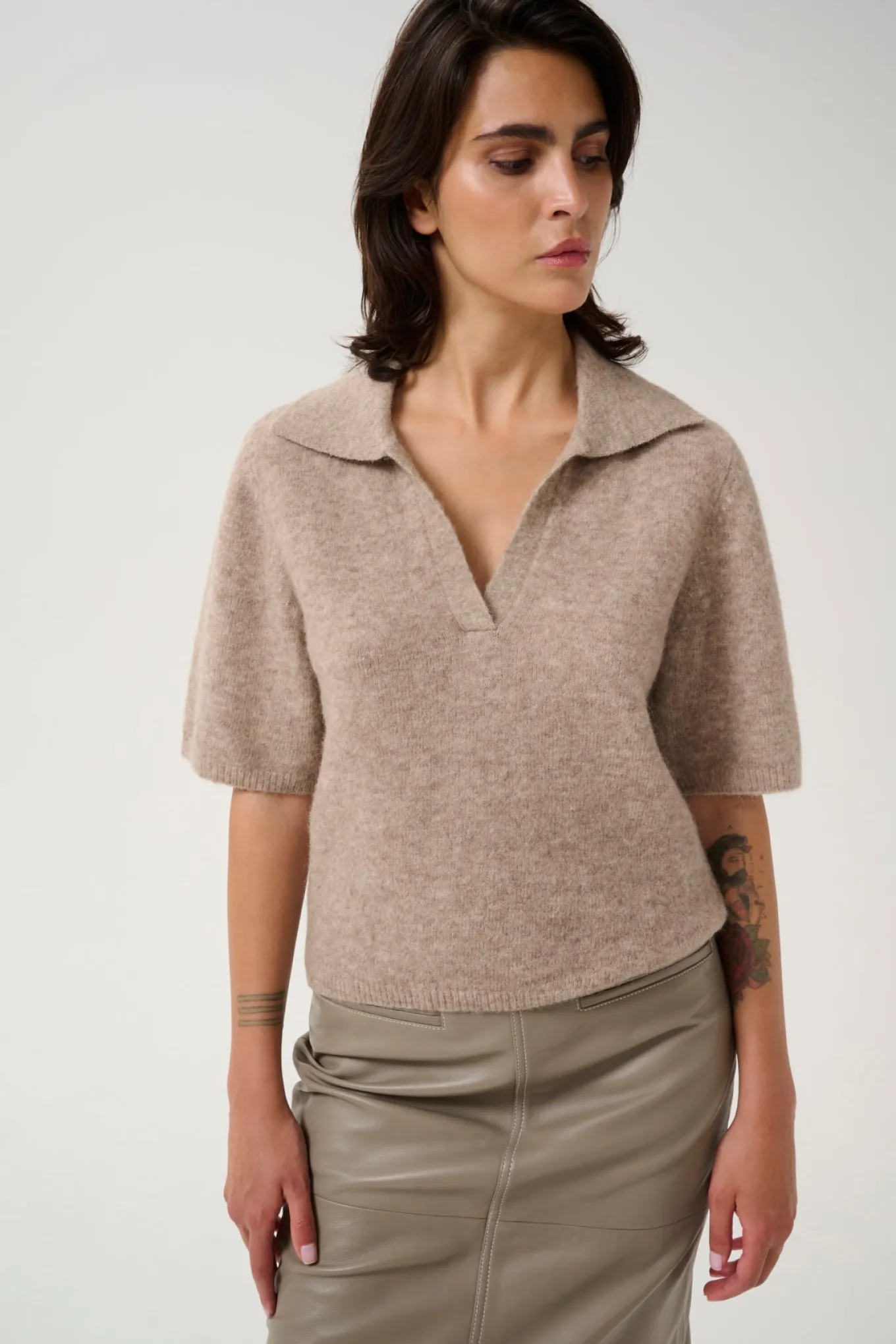 OBS! Fjernlager. Levering kan blive forlænget med 2-3 dage, hvis varen ikke findes i vores butik lige nu.Blød og lækker strik fra Gestuz med en blød krave og v-udskæring i halsen, kort ærmer og en afslappet silhuet.