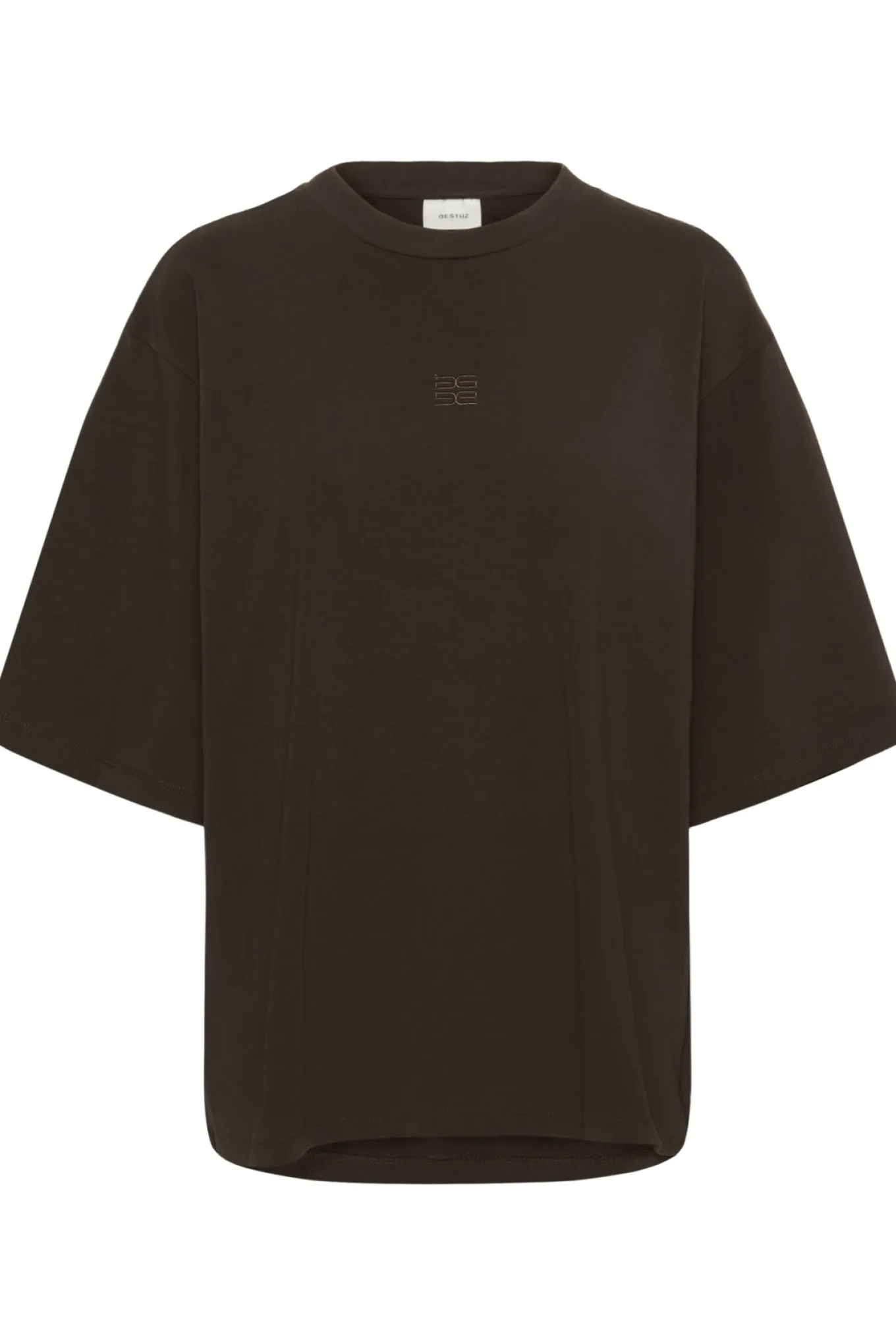 OBS! Fjernlager. Levering kan blive forlænget med 2-3 dage, hvis varen ikke findes i vores butik lige nu.Oversized tee fra Gestuz med ½ lange ærmer, rund hals og et lille broderet logo foran.