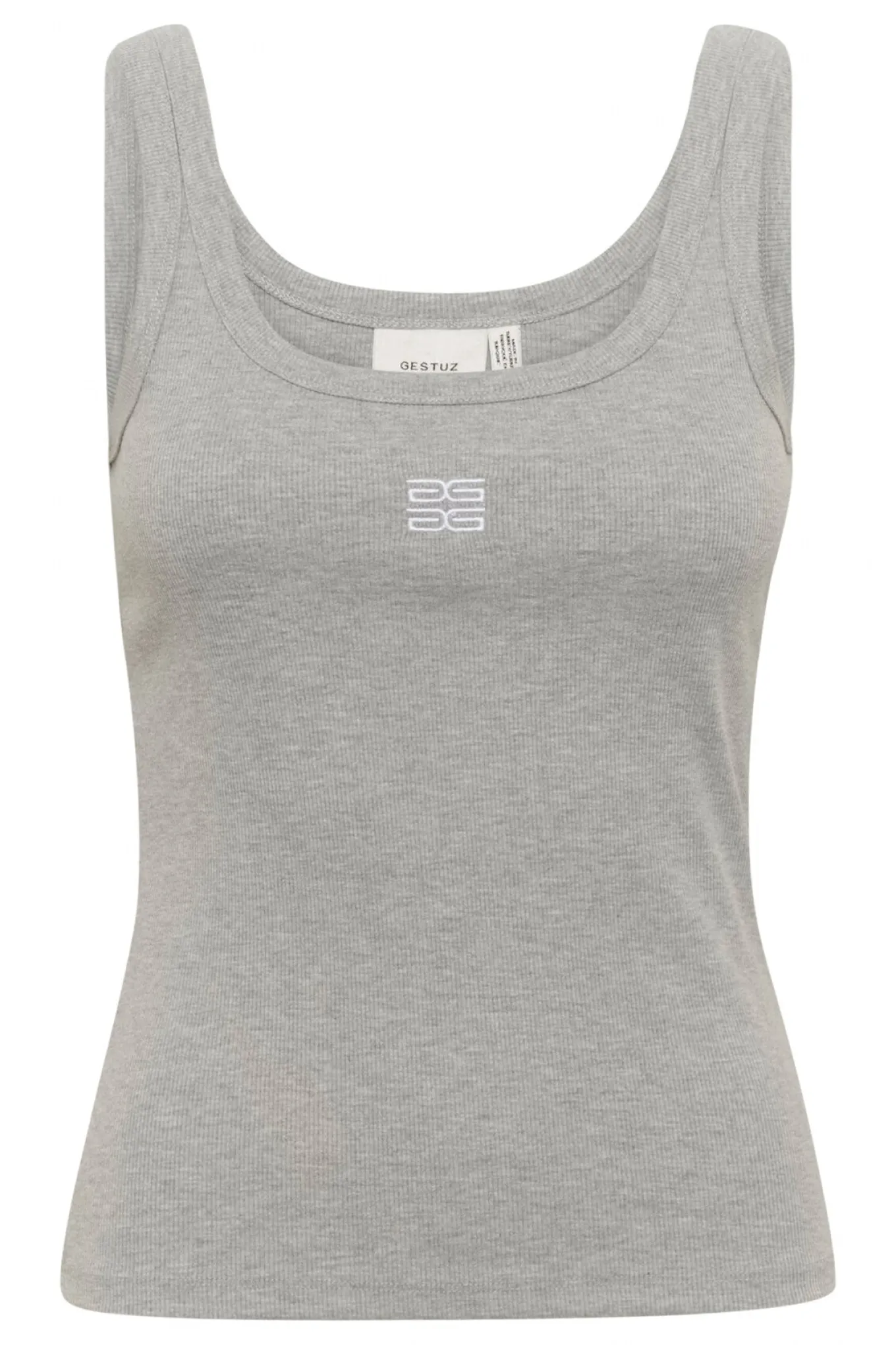 OBS! Fjernlager. Levering kan blive forlænget med 2-3 dage, hvis varen ikke findes i vores butik lige nu.Smart top fra Gestuz med en cropped længde, ribkvalitet og et fint broderet logo på brystet.