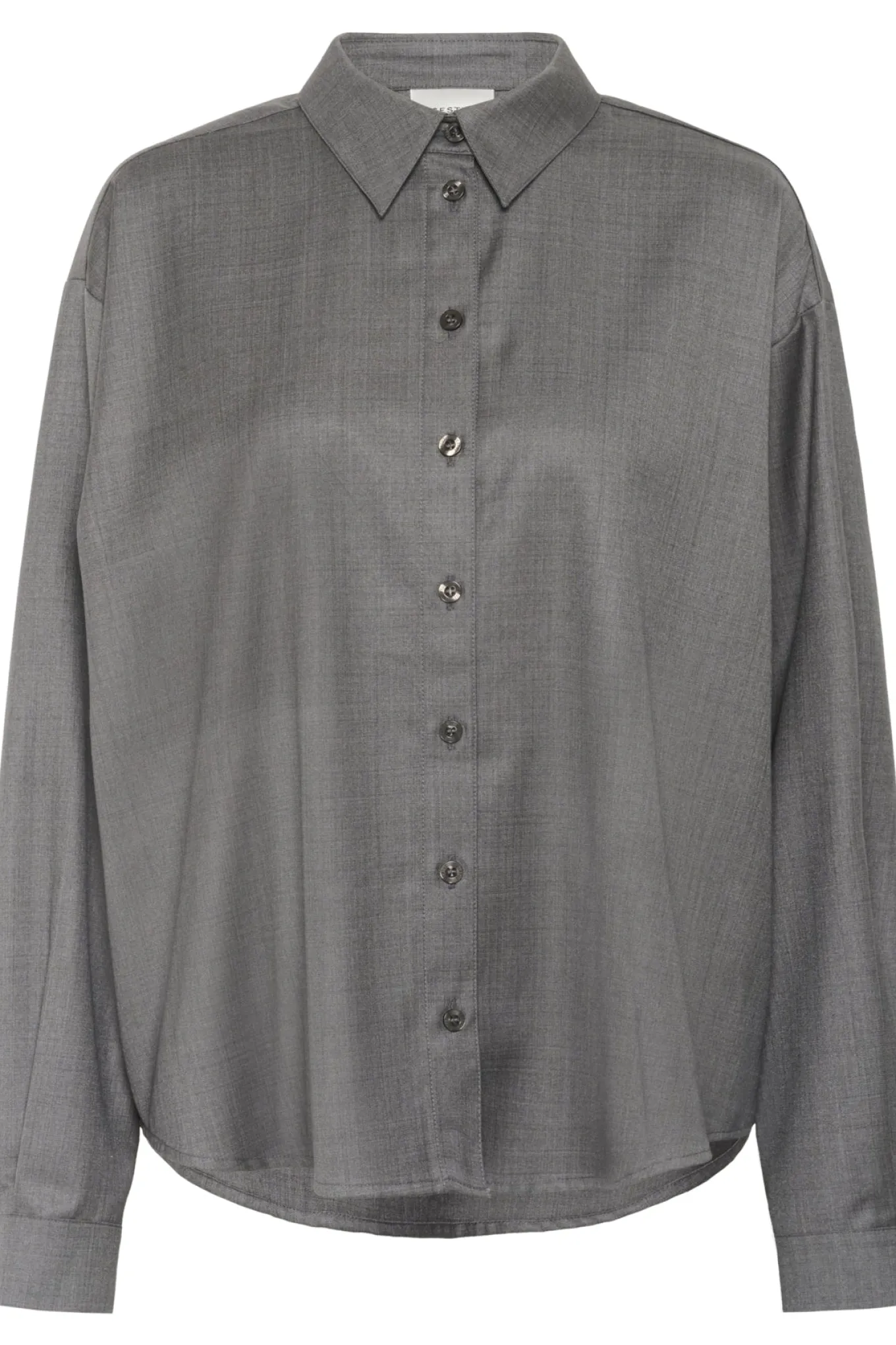 Opdater din garderobe med denne elegante bluse i mørkegrå melange fra GESTUZ. Den er lavet af et blødt materiale og er perfekt til både hverdag og fest. Skab et stilfuldt look fra Gestuz med denne smukke bluse.