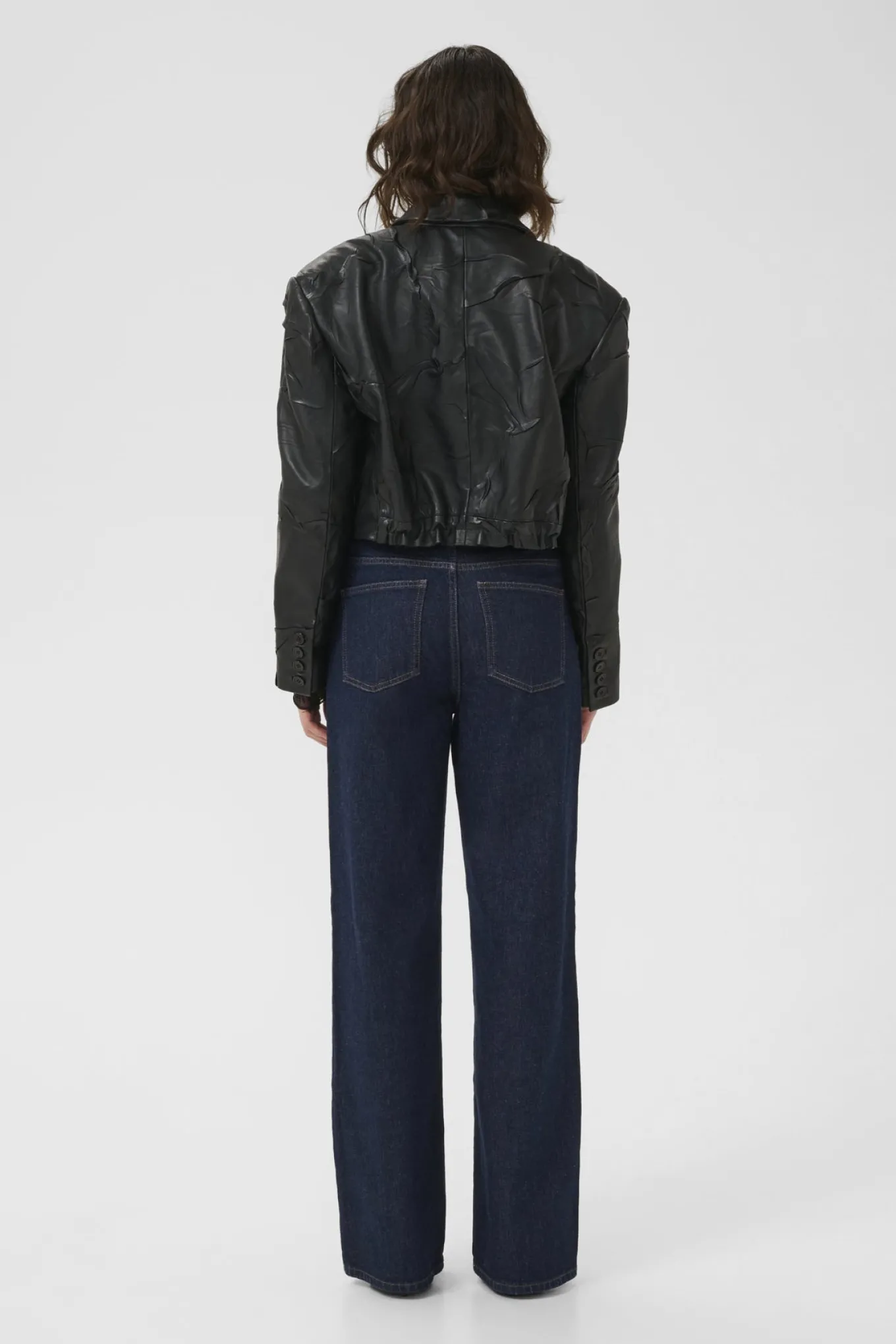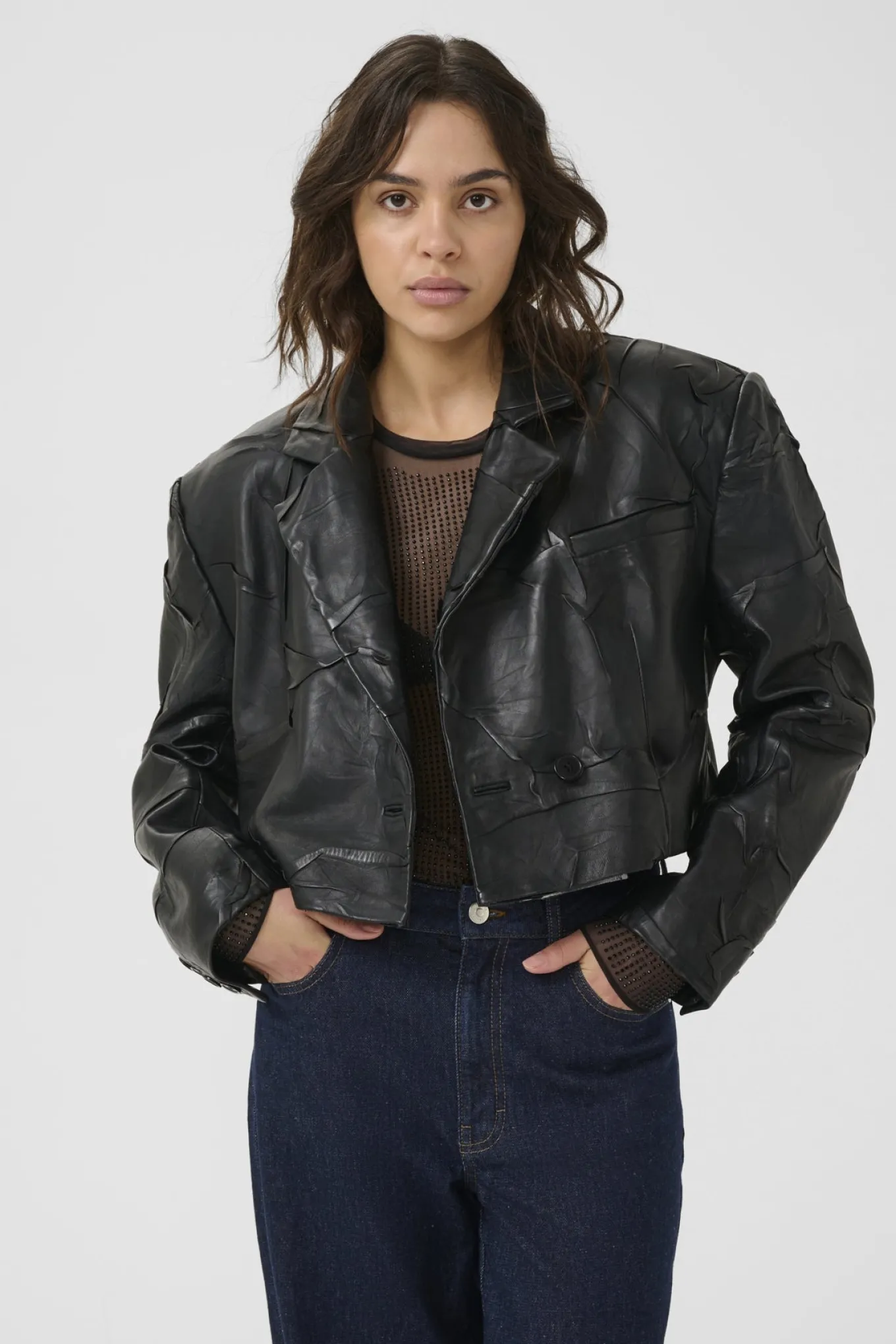 Skab et elegant og tidløst look med denne blazer i lækker sort lammeskind. Perfekt til enhver anledning, fra Gestuz.