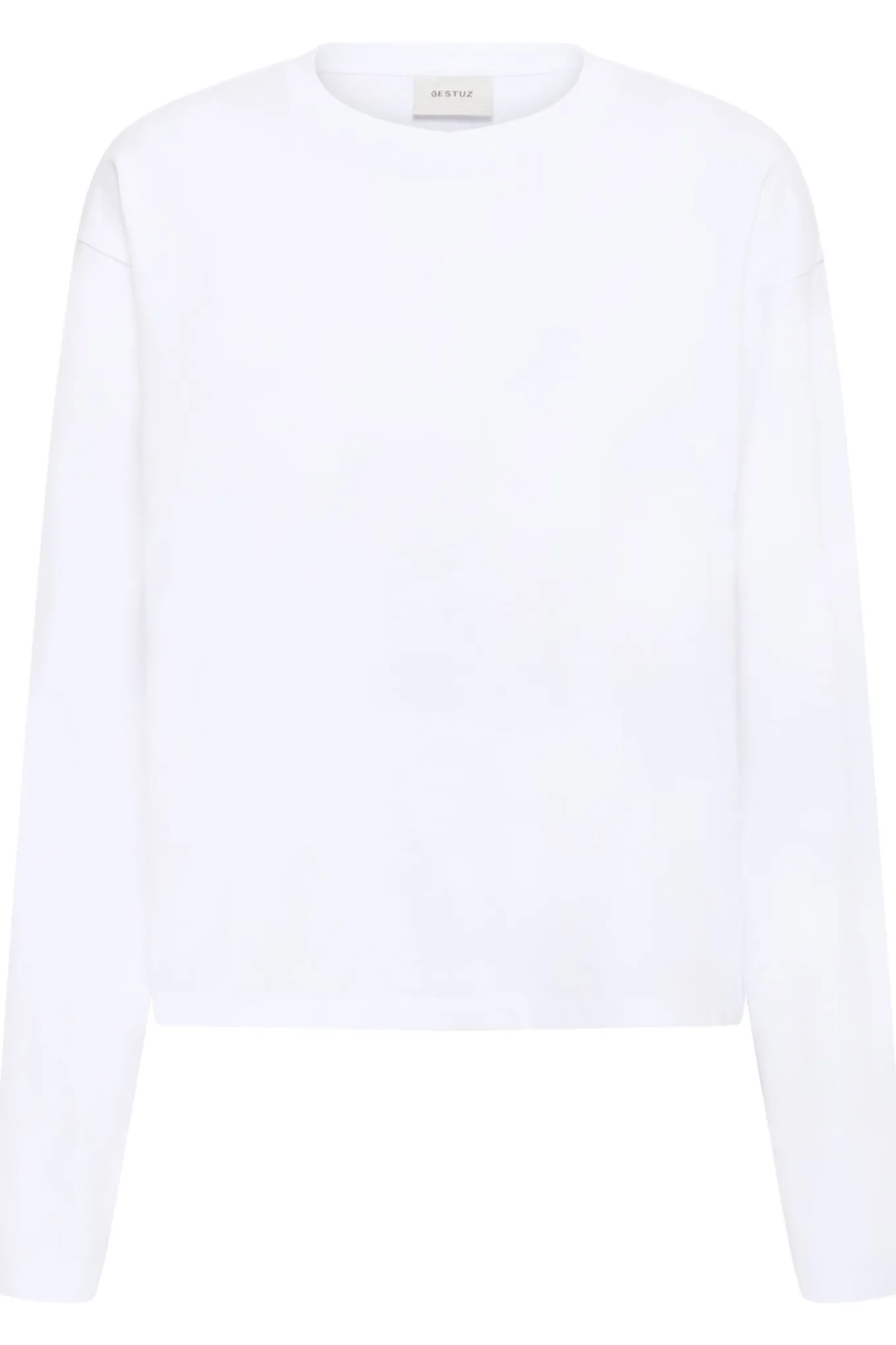 Opdater din garderobe med denne klassiske hvide top fra Gestuz. Lavet af økologisk bomuld og elastan for en behagelig pasform. Perfekt til enhver lejlighed.