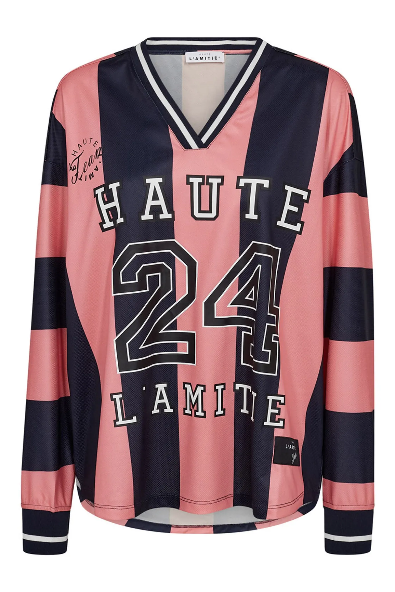 HL24 Stripe Football Blouse Navy/Pink HL10484